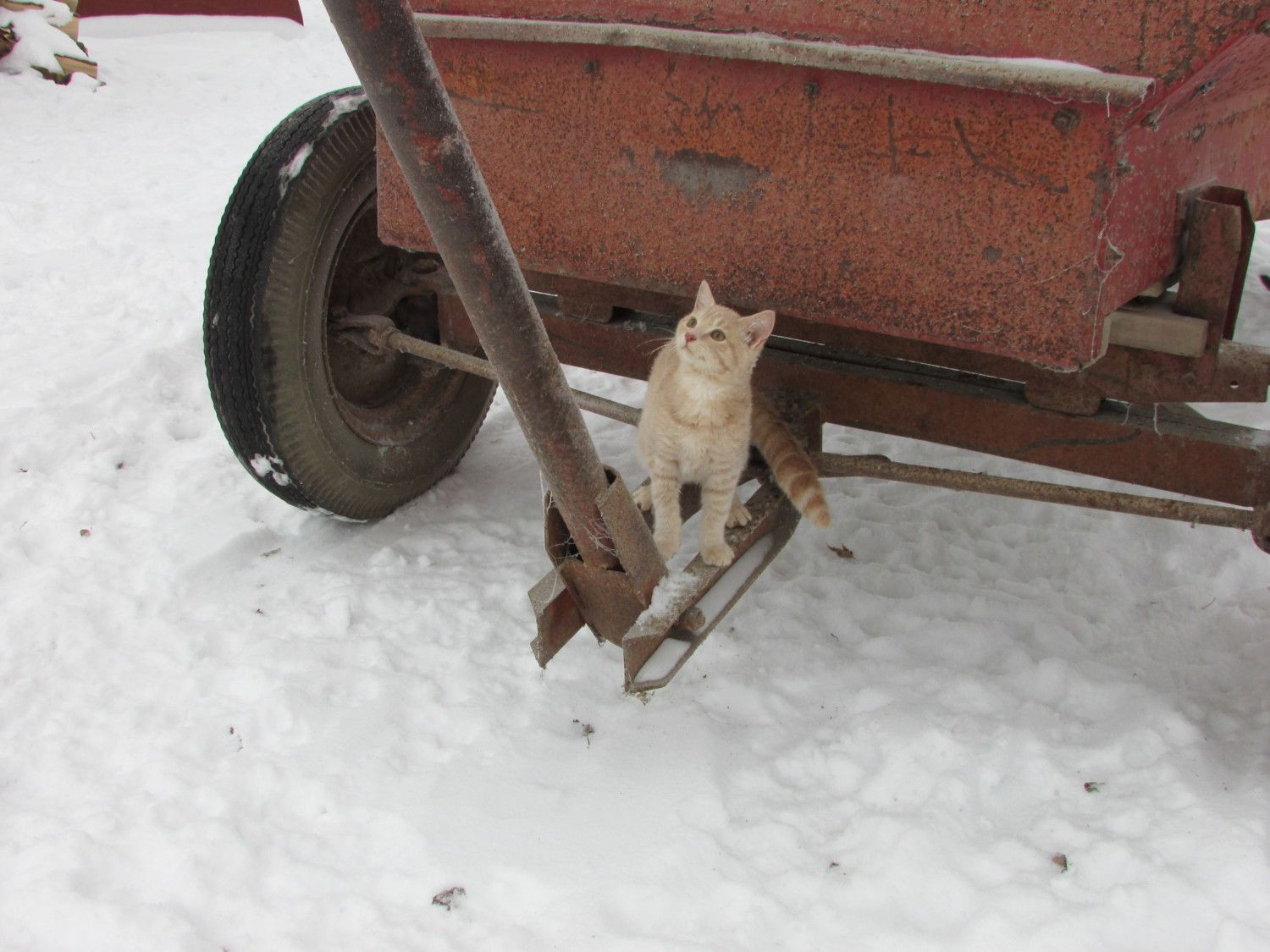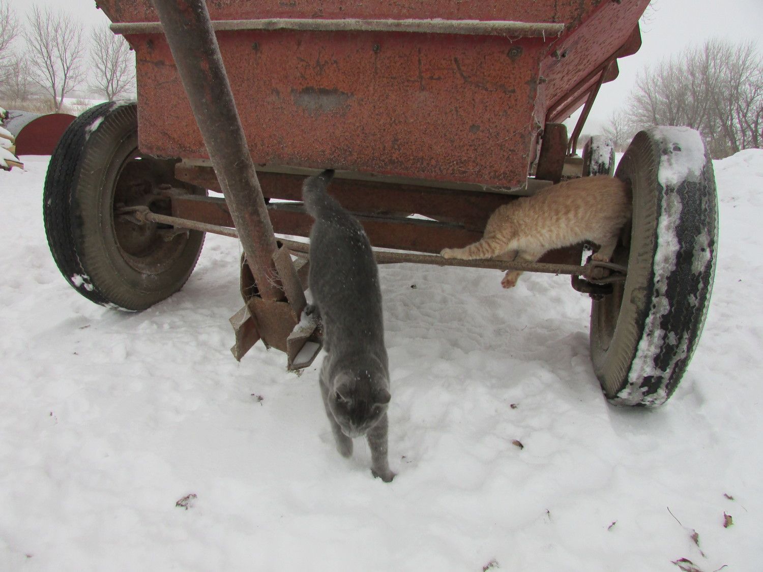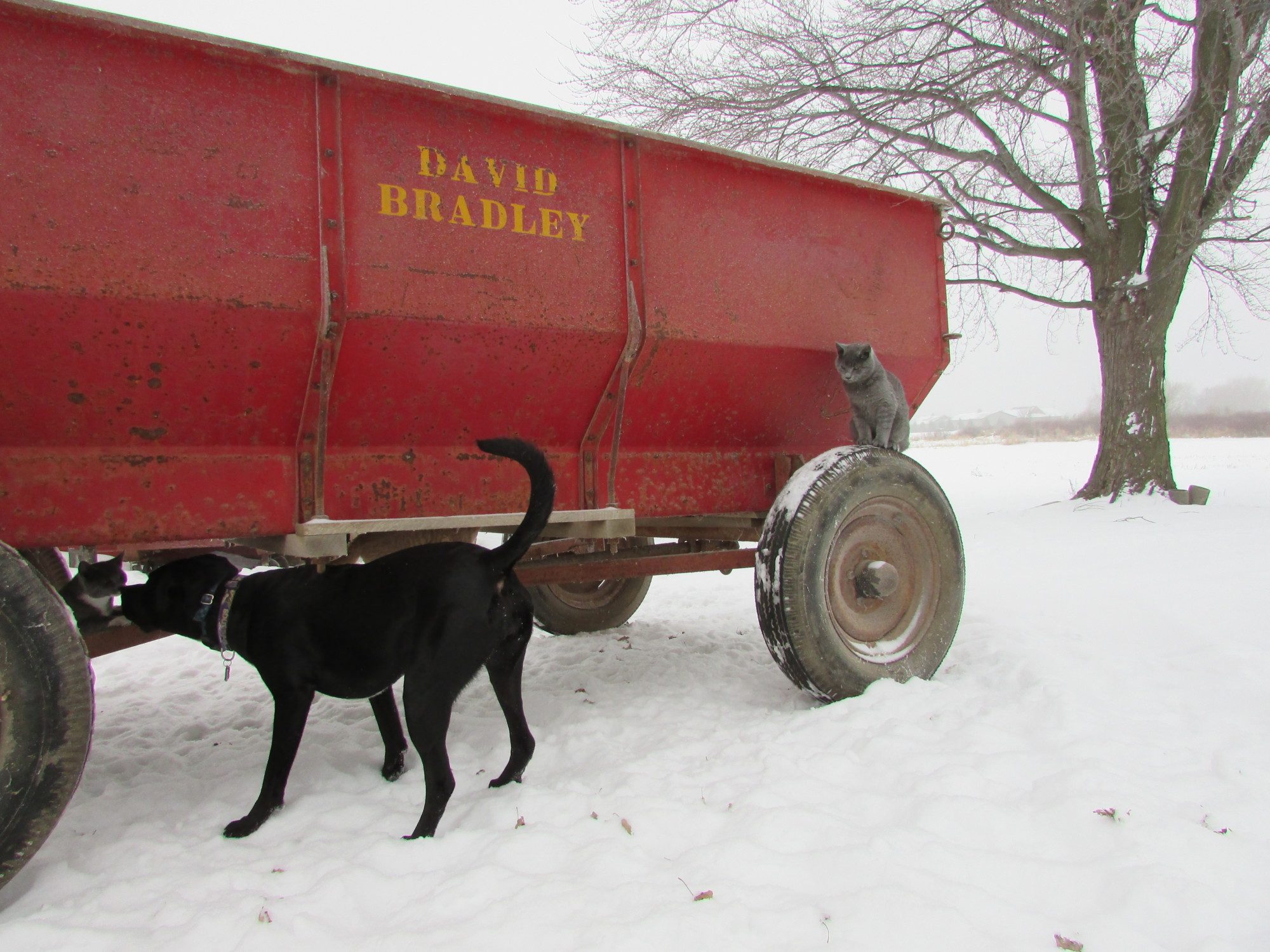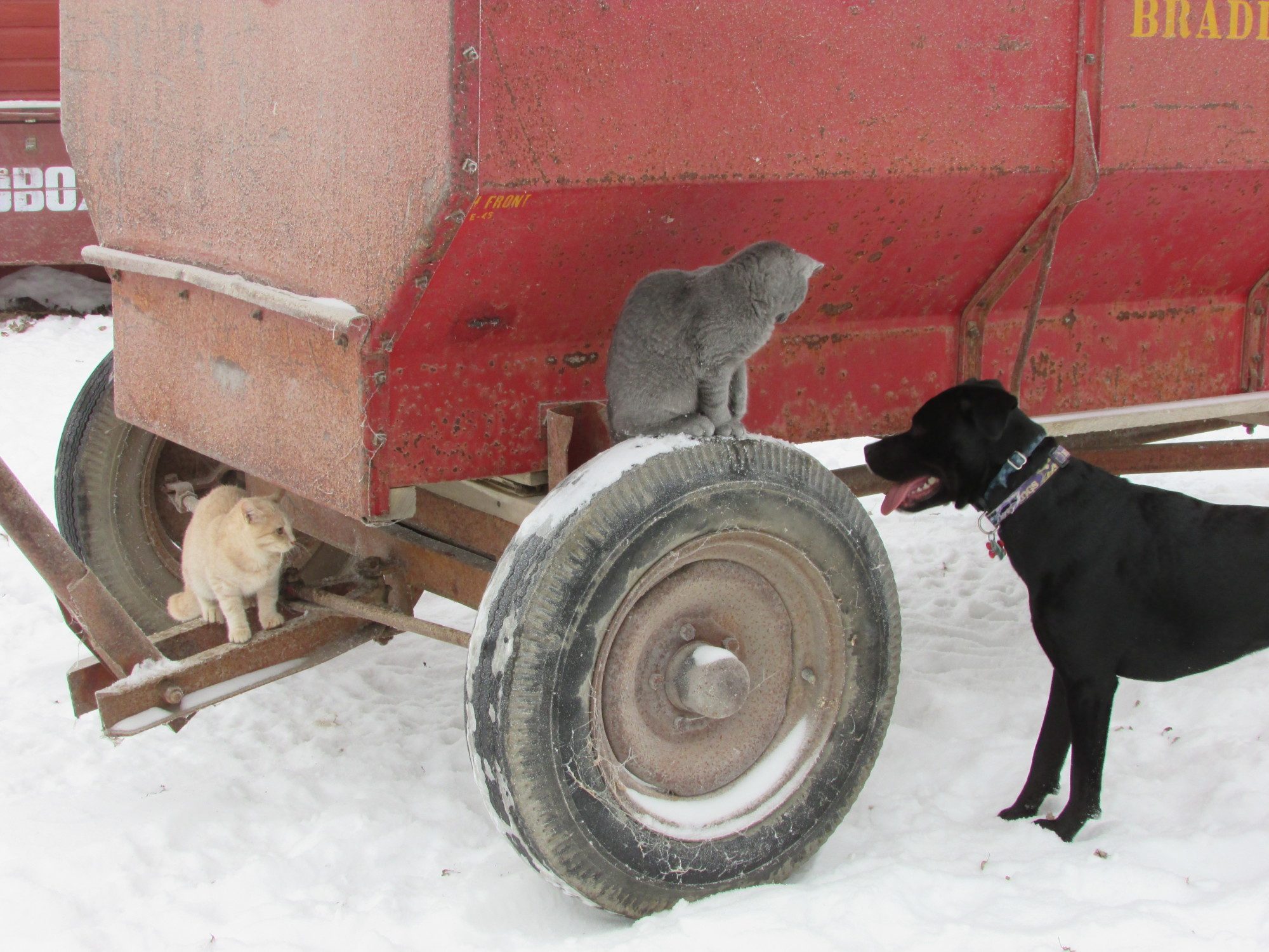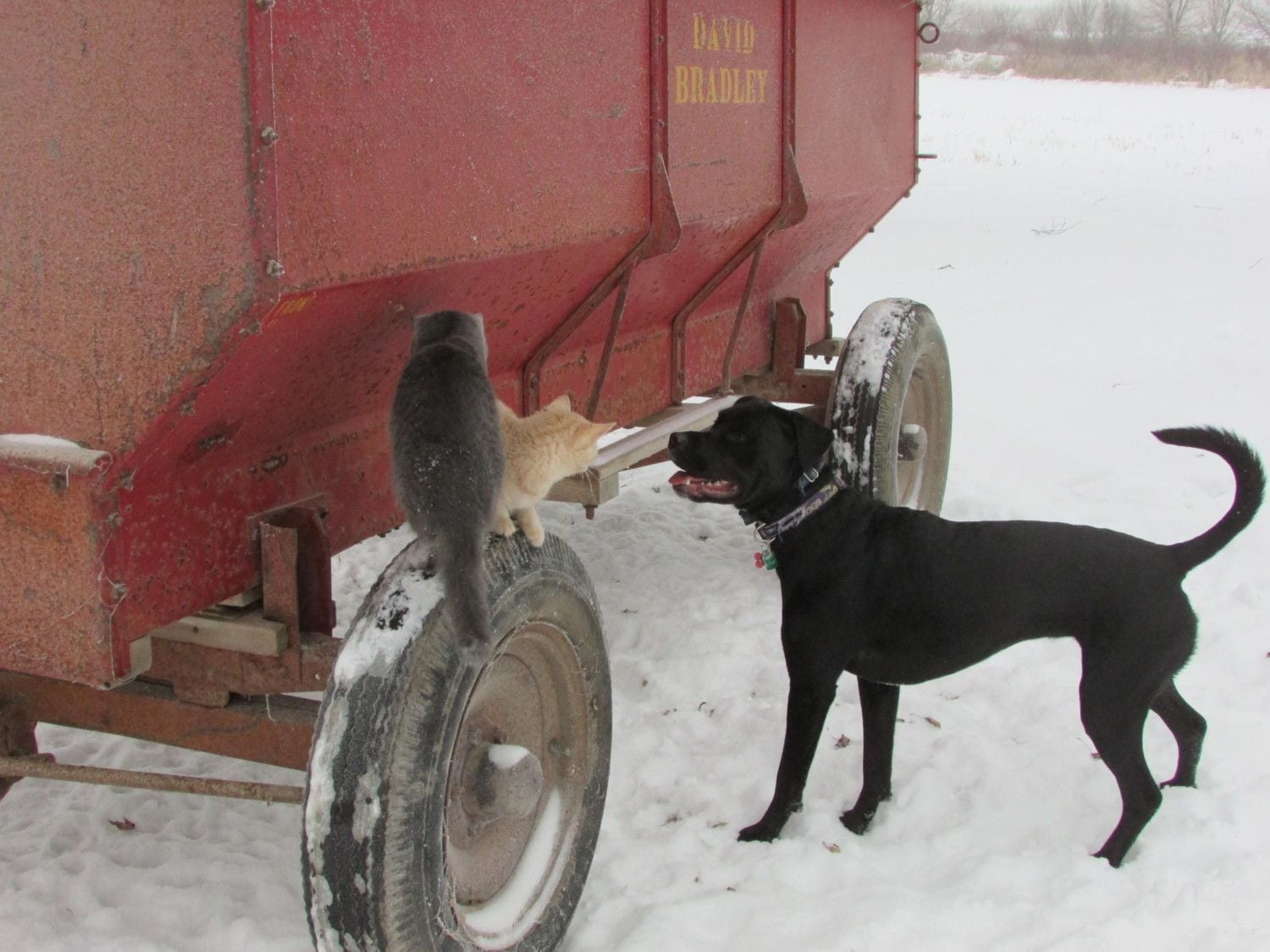 SO glad you asked LaLa! I forgot to share! here is what we spent our early Sunday morning doing! the kittens made their final move out of my shop to a different shed where I cut a cat flap. we then spent the morning playing in the snow with the kittens and puppies! they had a blast playing on my new grain wagon I bought last week for storing corn. we were thrilled that our dogs did so well with them. we have been practicing being nice with our lab mix pup. she has been a bit anxious around them, knowing she should be nice and fighting the urge to chase them. She played so nice with them!