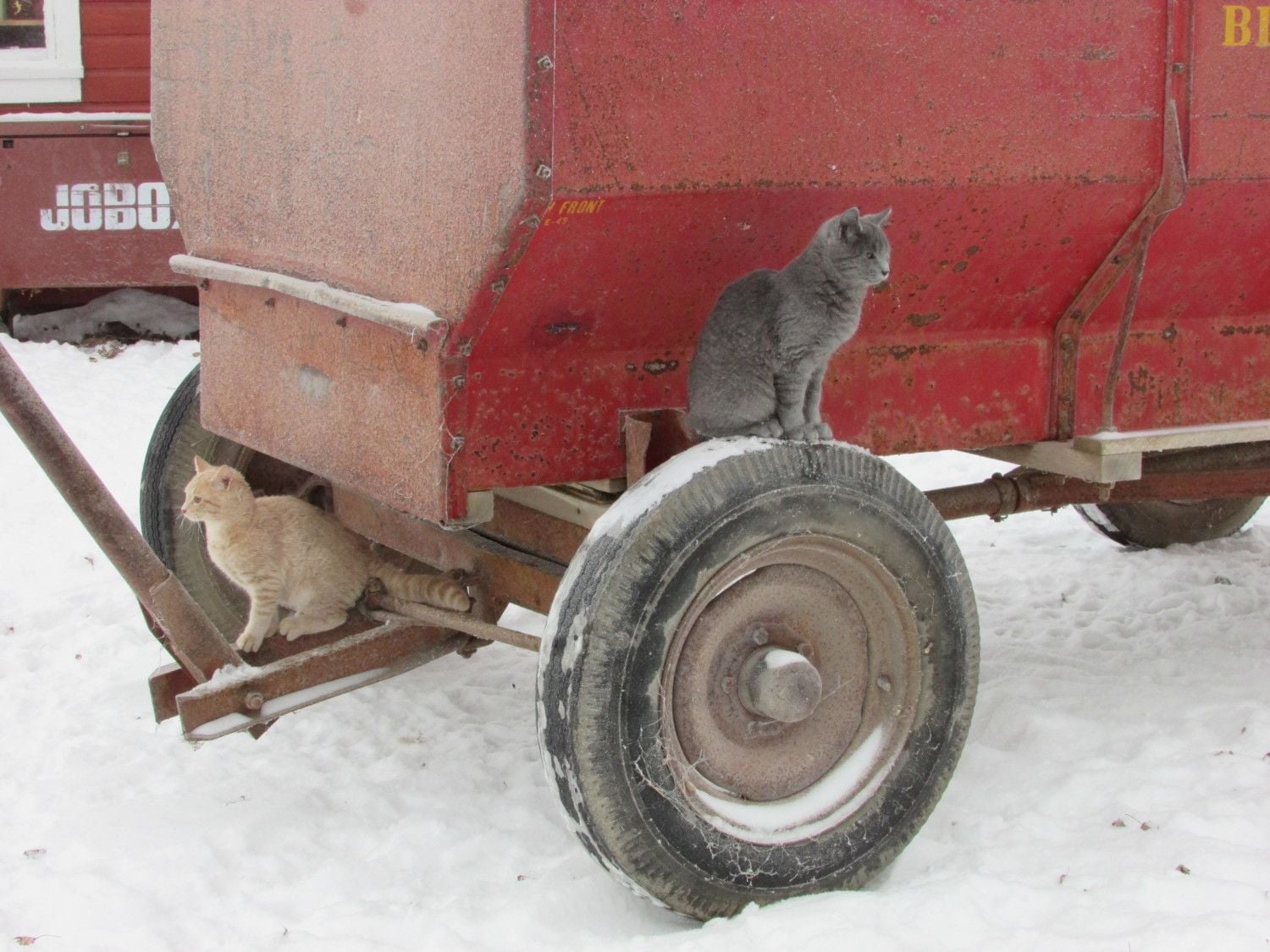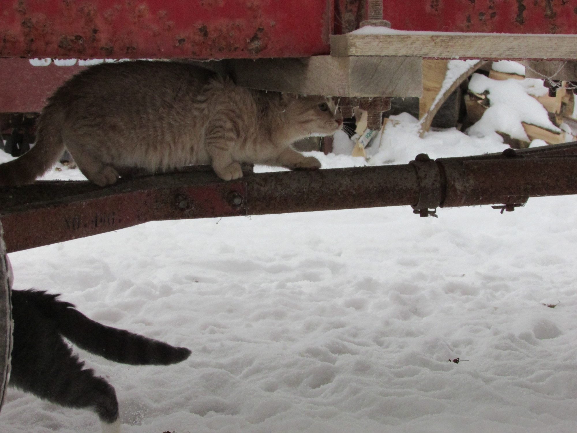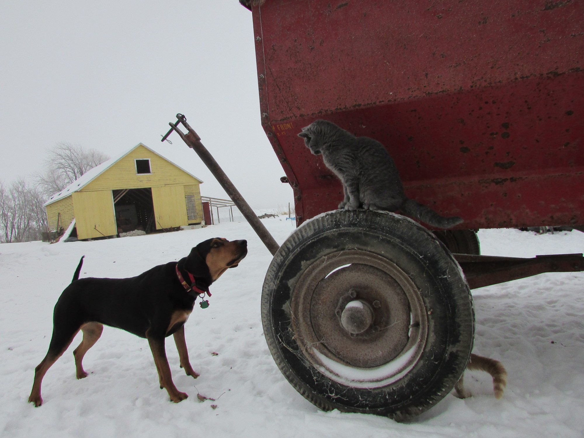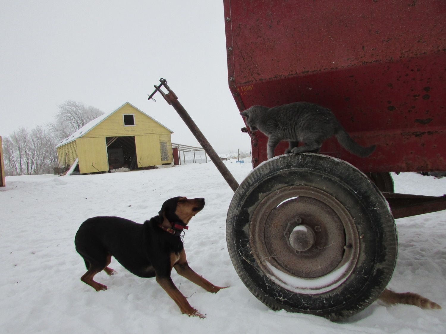 SO glad you asked LaLa! I forgot to share! here is what we spent our early Sunday morning doing! the kittens made their final move out of my shop to a different shed where I cut a cat flap. we then spent the morning playing in the snow with the kittens and puppies! they had a blast playing on my new grain wagon I bought last week for storing corn. we were thrilled that our dogs did so well with them. we have been practicing being nice with our lab mix pup. she has been a bit anxious around them, knowing she should be nice and fighting the urge to chase them. She played so nice with them!