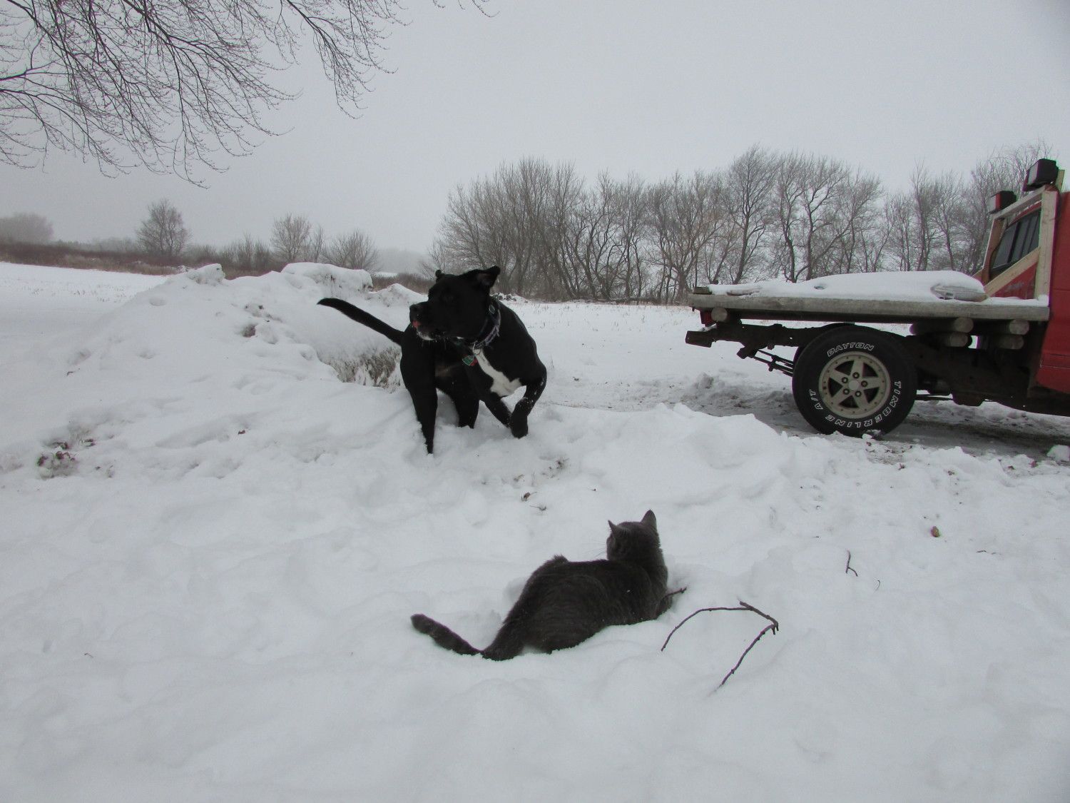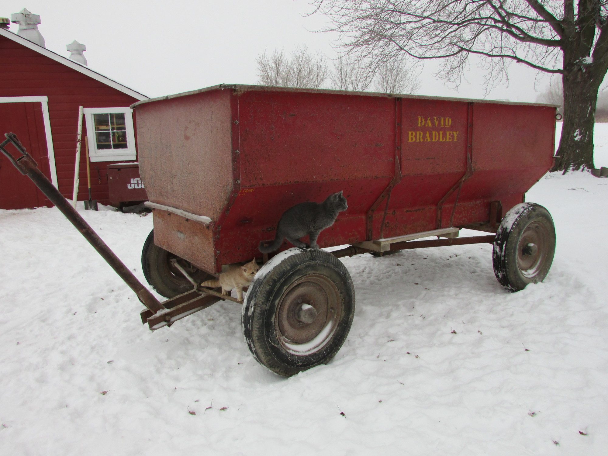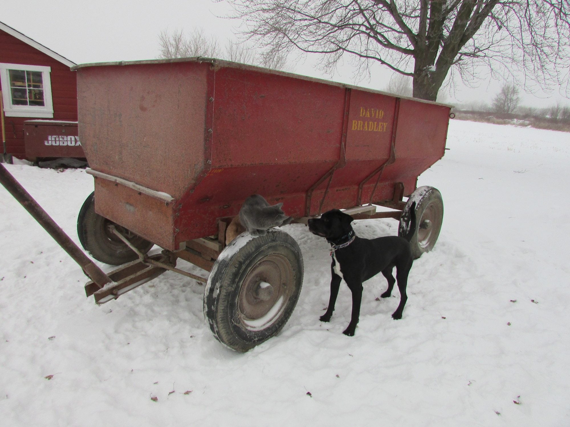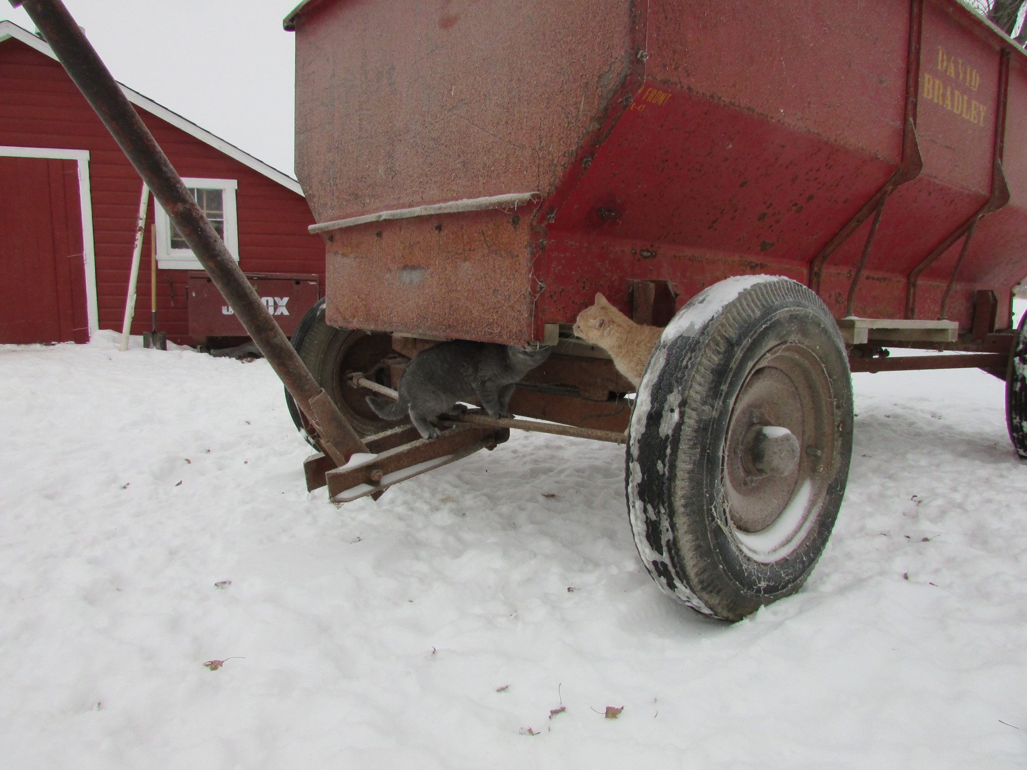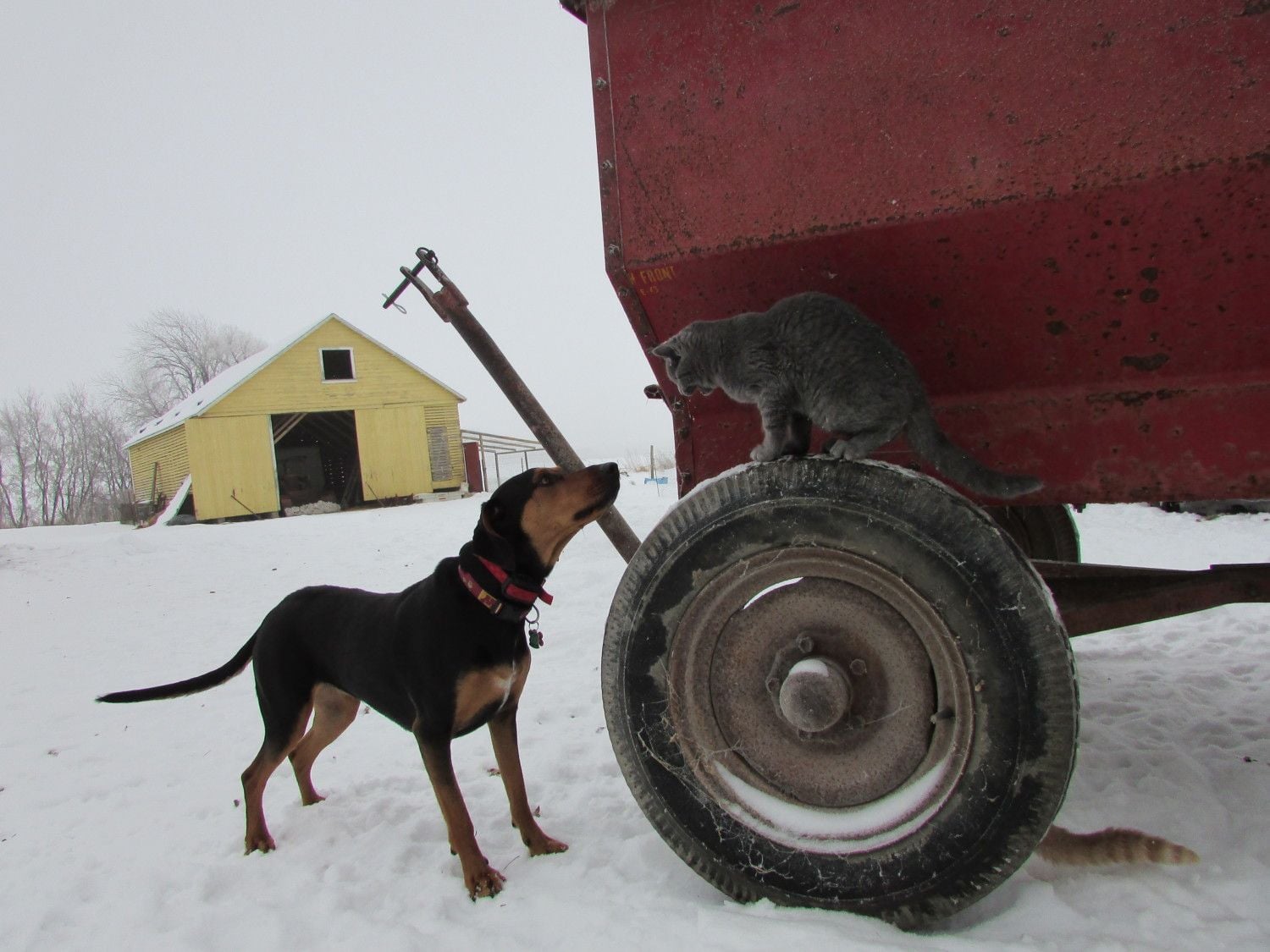 SO glad you asked LaLa! I forgot to share! here is what we spent our early Sunday morning doing! the kittens made their final move out of my shop to a different shed where I cut a cat flap. we then spent the morning playing in the snow with the kittens and puppies! they had a blast playing on my new grain wagon I bought last week for storing corn. we were thrilled that our dogs did so well with them. we have been practicing being nice with our lab mix pup. she has been a bit anxious around them, knowing she should be nice and fighting the urge to chase them. She played so nice with them!