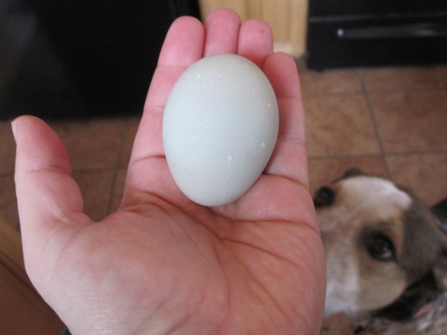 I actually witnessed her lay it too, it was perfect timing. I had seen she was in the nest box earlier so I just poked my head in there a little later to see how she was doing and she stood up and popped out the egg!