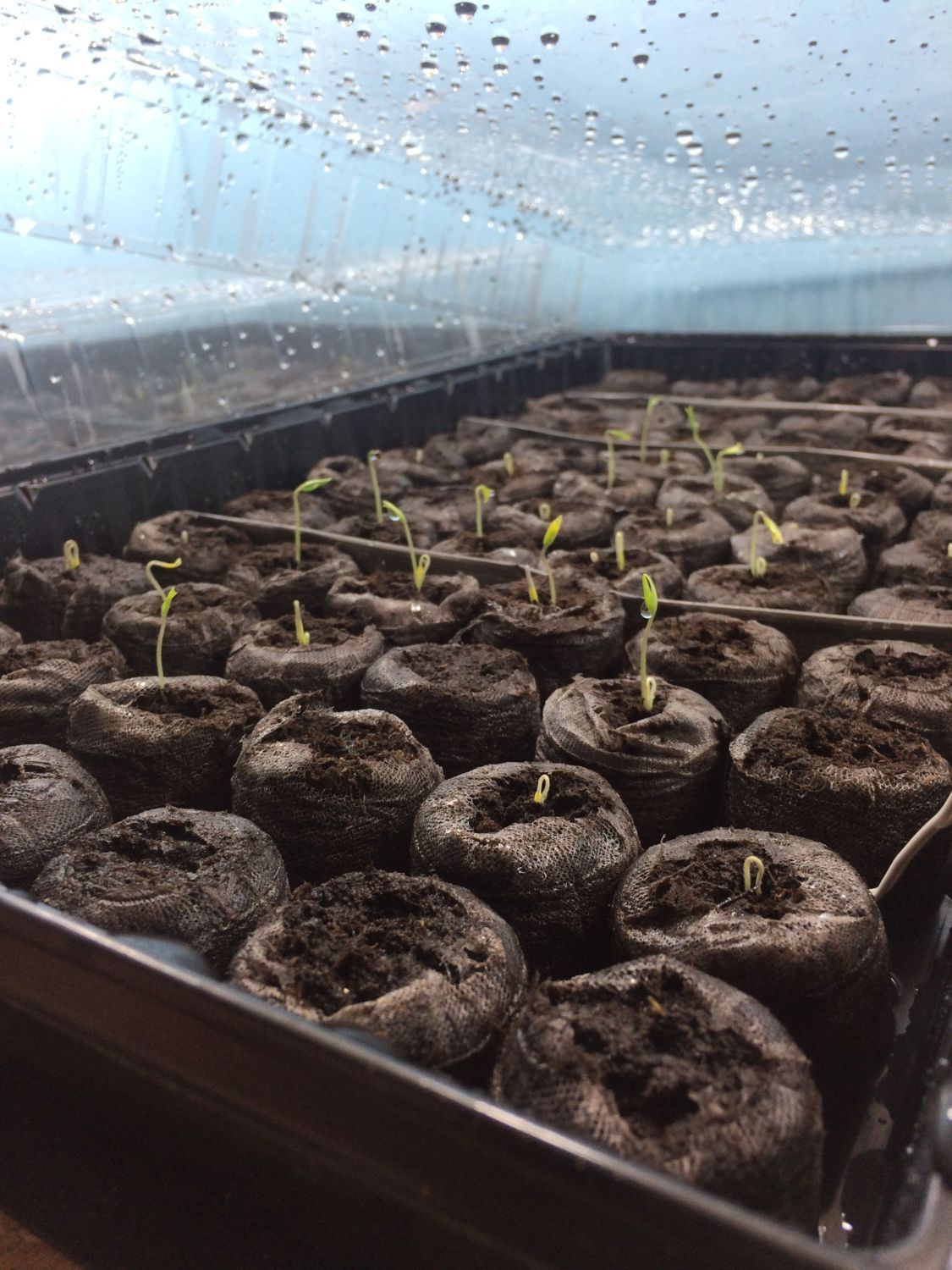 Pictures are Roma and San Marzano tomatoes coming up. Jalapeño and bell peppers in the back haven't come up yet.