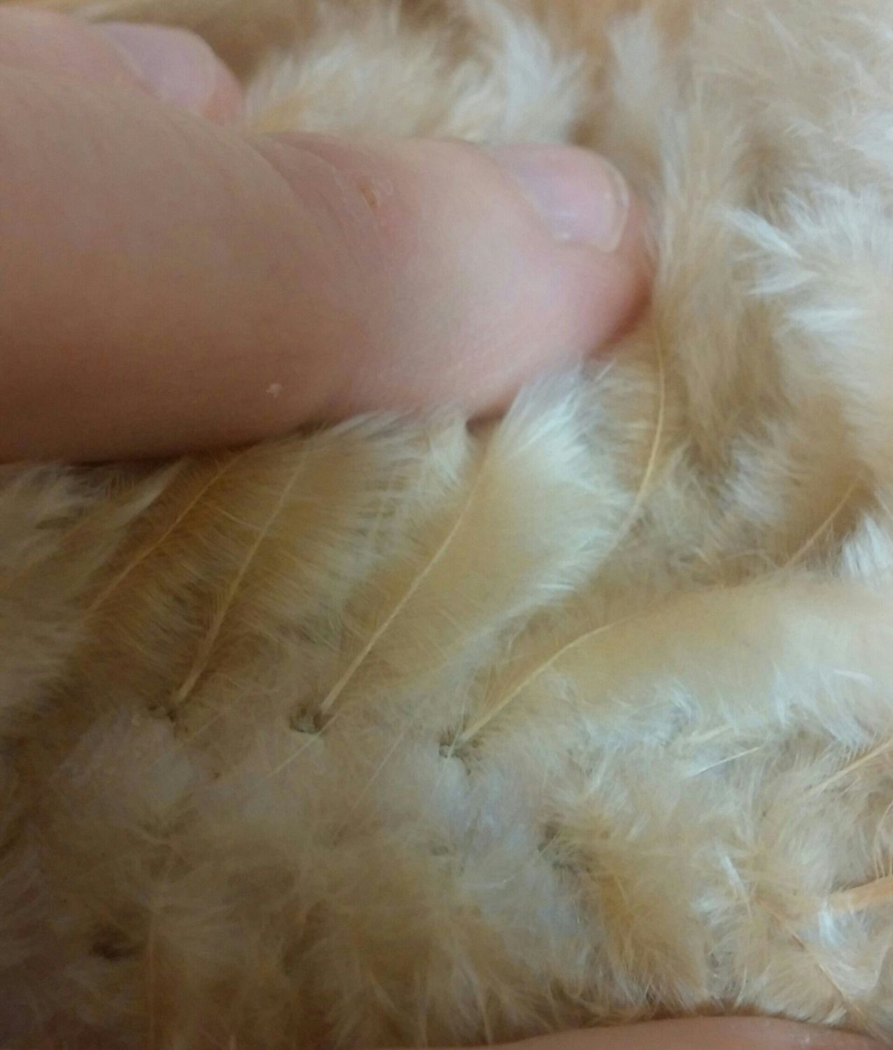 edited to add: oh yeah, I do think that is feather damage from roosters that you are seeing, but the grey lollipops at the base of the feathers is different.