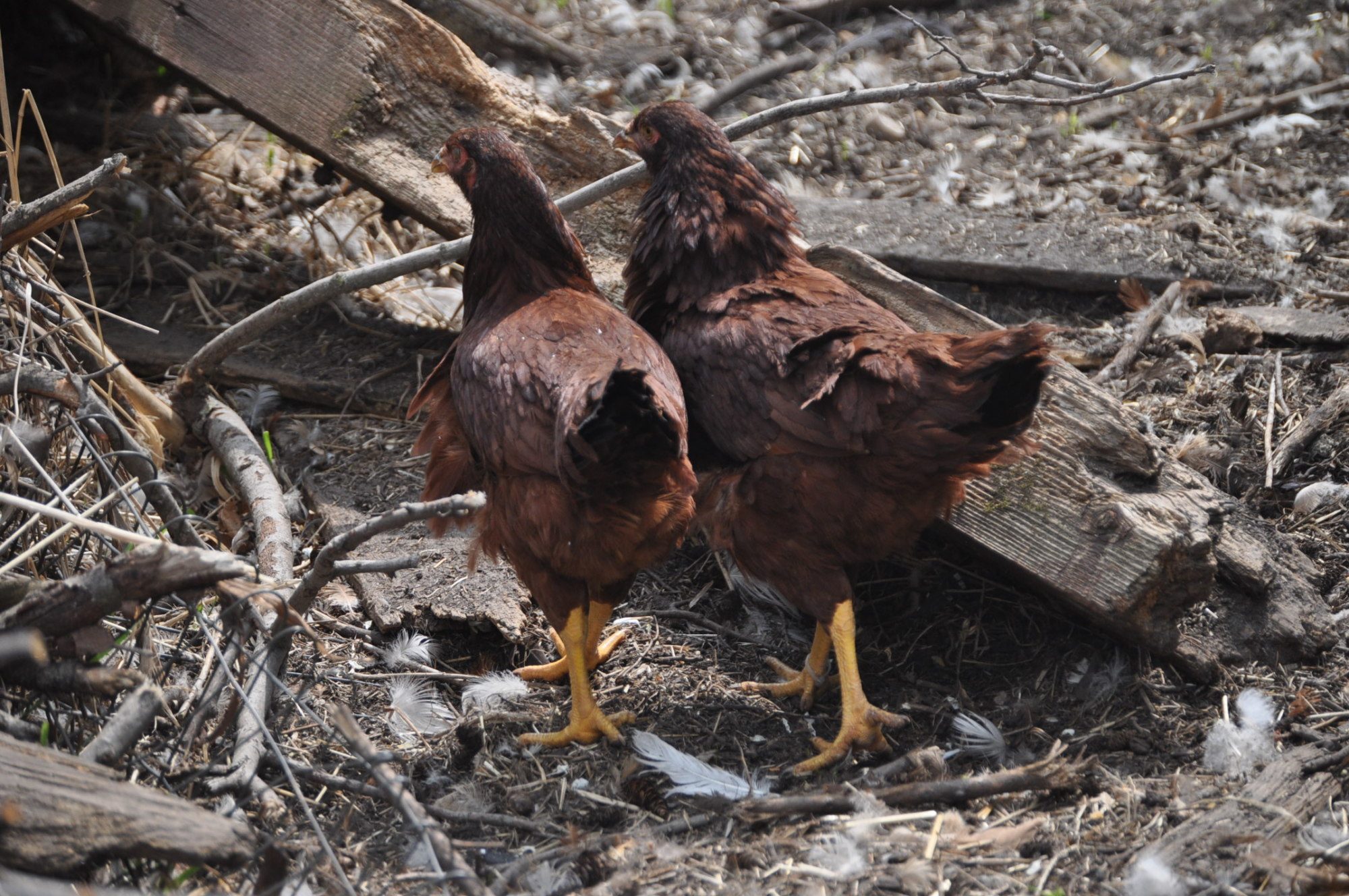 This is the second summer of chicken owning. I have a large chicken pen, 800 square feet, that previously was an overgrown no-man's-land between the yard and pasture, with pine trees/poplar/hay/raspberries/etc...the hens hang out in there a lot and usually head out to free range a couple times a day. Well, this spring has been like an archeological dig. The hens have cleared out much of the grass and the goats (who I had for a few months) took care of a lot of the brush. I am finding bits of plastic, broken glass, metal junks, deeply buried water hoses, blocks of cement, the foundation of an old building, pieces of tarp, bungees, bricks.....some of it is so deep I can only see a tip of it and would have to do some serious digging to get the rest out. There were numerous raspberry plants growing through the tarp. None of it concerns me much except the glass. I search daily for glass and since the snow melted have found a piece every week or so. I think I got it all now. I'm quite worried about the glass but the pen is so perfect otherwise- I hate to move it. The gate is left open and the hens still choose to be in the pen most of the day. Anyway, I don't remember tossing out junk (been here for 25 or so years). I blame dh or previous owner.