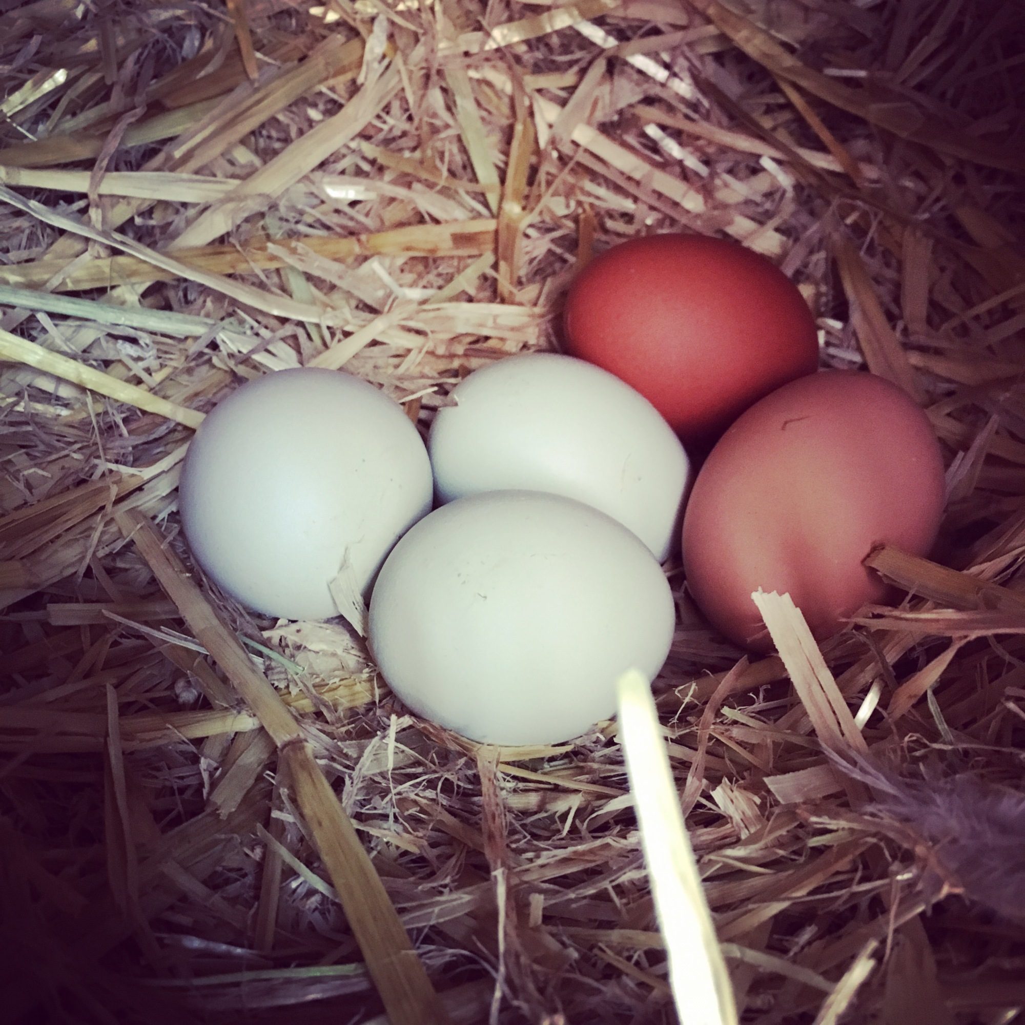 I am not surprised. My Wellies often have good sized eggs right from the start! They look so pretty! Is that hers in the back? And a New Hampshire egg with them? My NHs are often on the darker side of brown, though not as dark as Wellies. Lovely blue eggs too! What color is the EE laying, is one of them hers? I have one really dark olive layer out here. I am hoping to make a few more this year![]()