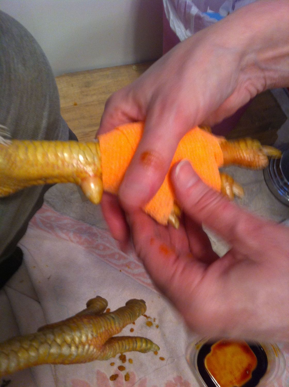 I made a poultice of sugar and betadine, and I found a salve with tea oil in it. I could not find an antibiotic lotion/salve. We cleaned Bert's foot with betadine. soaked it in warm water. applied the tea oil, betadine/ sugar poultice. My DW says his foot looks better. I cannot really tell. I am happy he drank water today and has a full crop of oats. I did not want him to over do it on the protein, so I gave him only whole oats today.