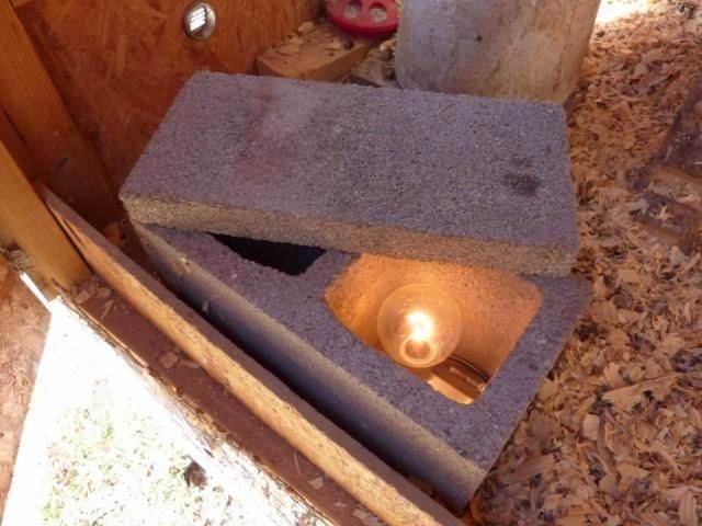 Is it unheard of to put a heat lamp inside a square made of cinder blocks and put a galvanized waterer over the top of it during the winter months?