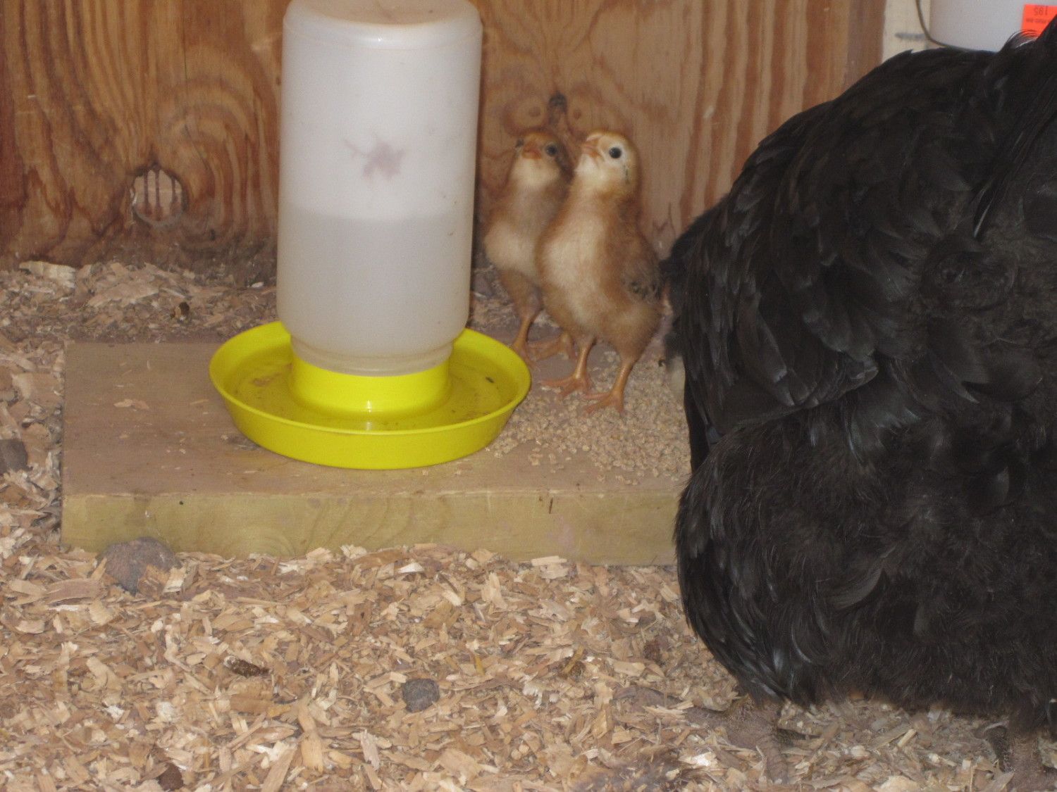 My two confirmed girls so far, the Buckeye and Welsummer synchronized drinking