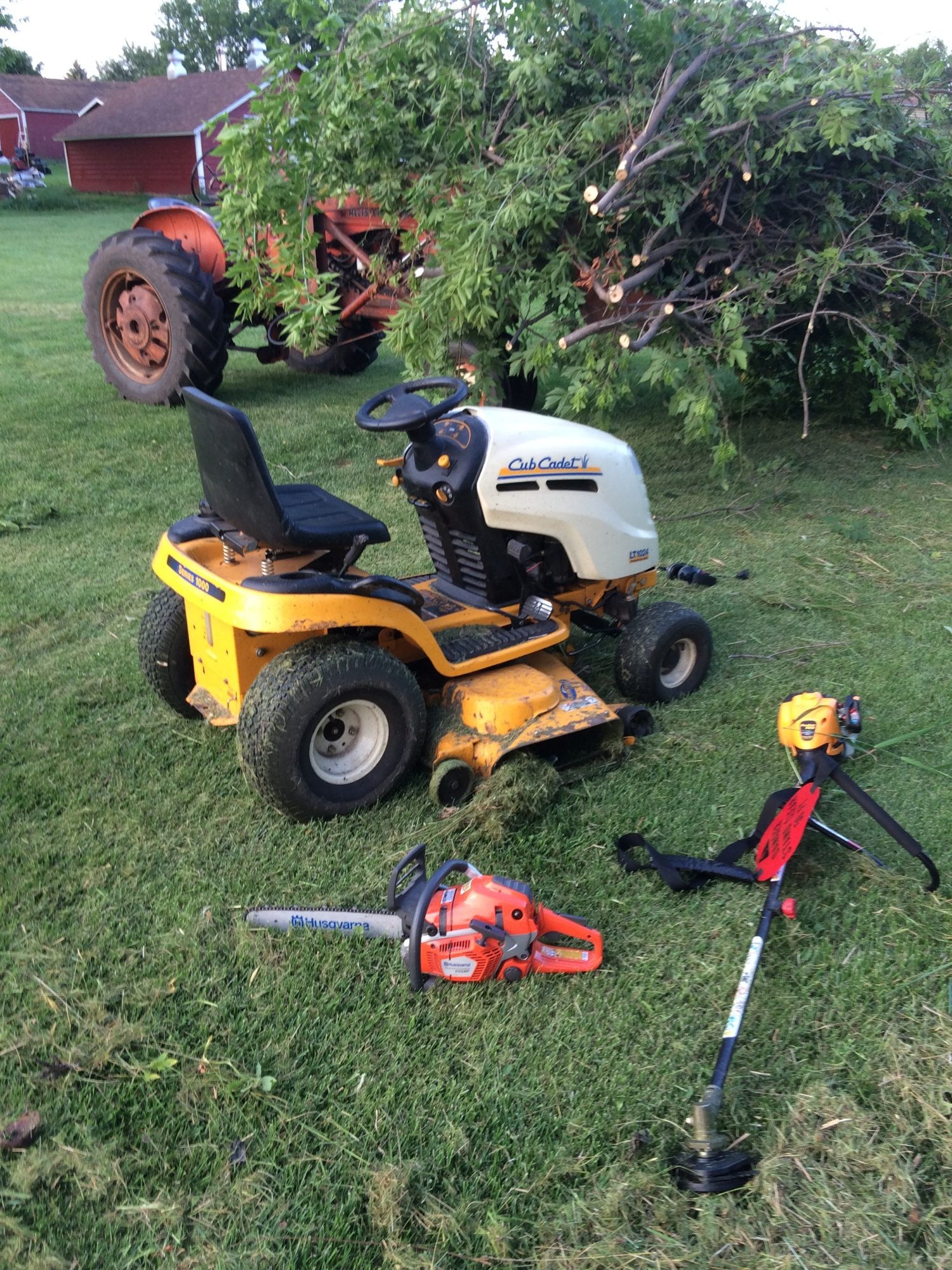 Today was the kind of day at work that is best described by words that dont belong in this forum, so I came home and got some good quality 'power tool' therapy with my favorite two sidekicks. I started working on reclaiming overgrown parts of my farmstead. Grass to my head was quick work with 'The Widowmaker!' there are young trees that have never been trimmed that got a nice haircut as well!