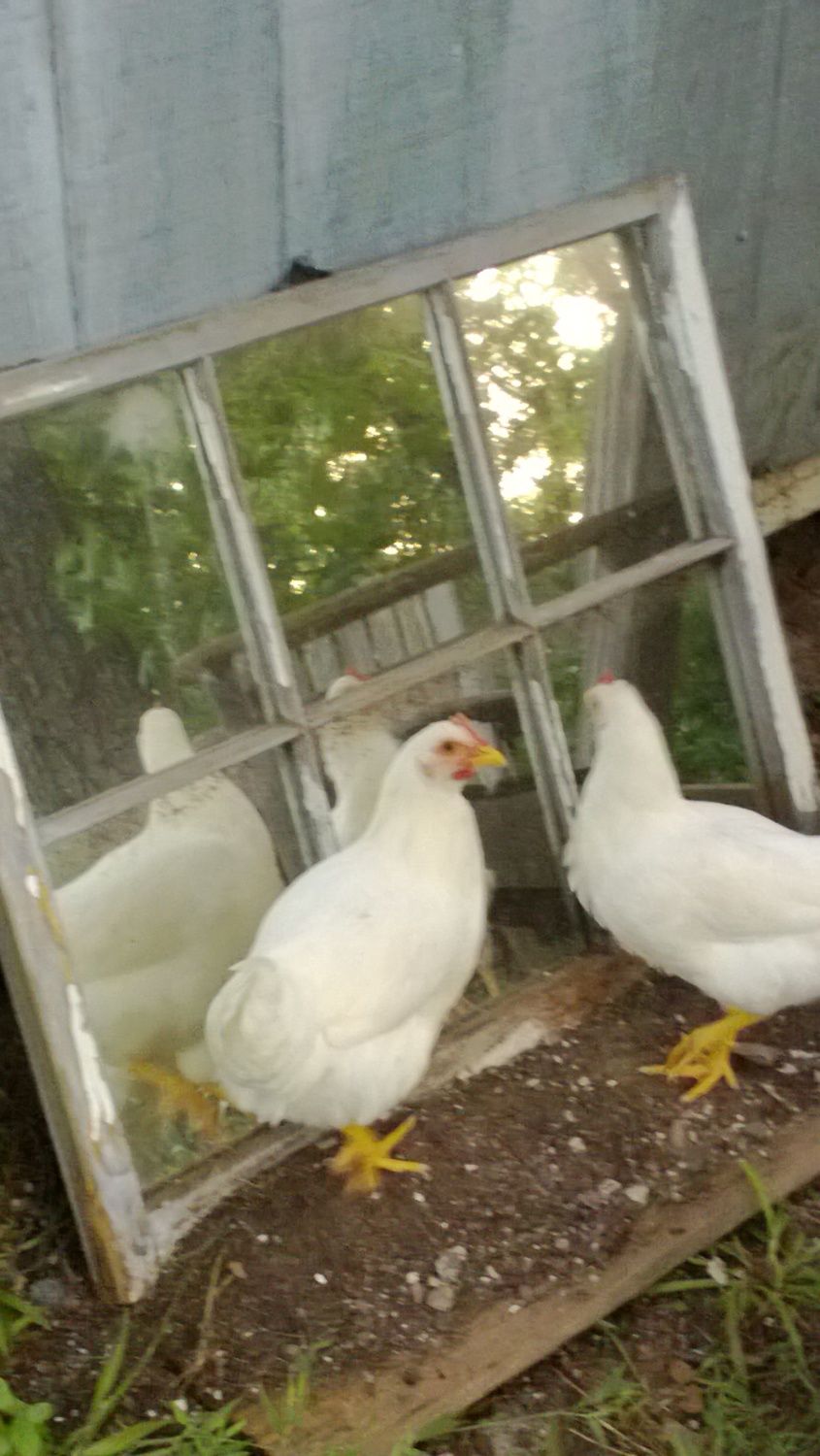 So my chickens have fallen in love with this mirror i have out side of the shed out back. My rooster isn't as happy about his reflection, he thinks it's another male and tries to fight it from time to time but for the most part they just sit there and stare at themselves. Is this normal