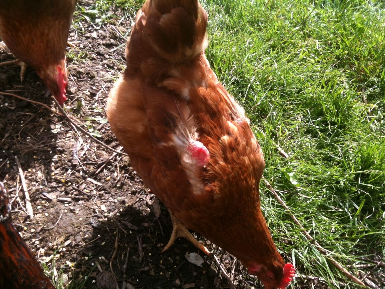 I am concerned about one of my laying hens. She looks like she is missing some feathers on both of her wings. It is also all red where the feathers are missing. Here is a picture: