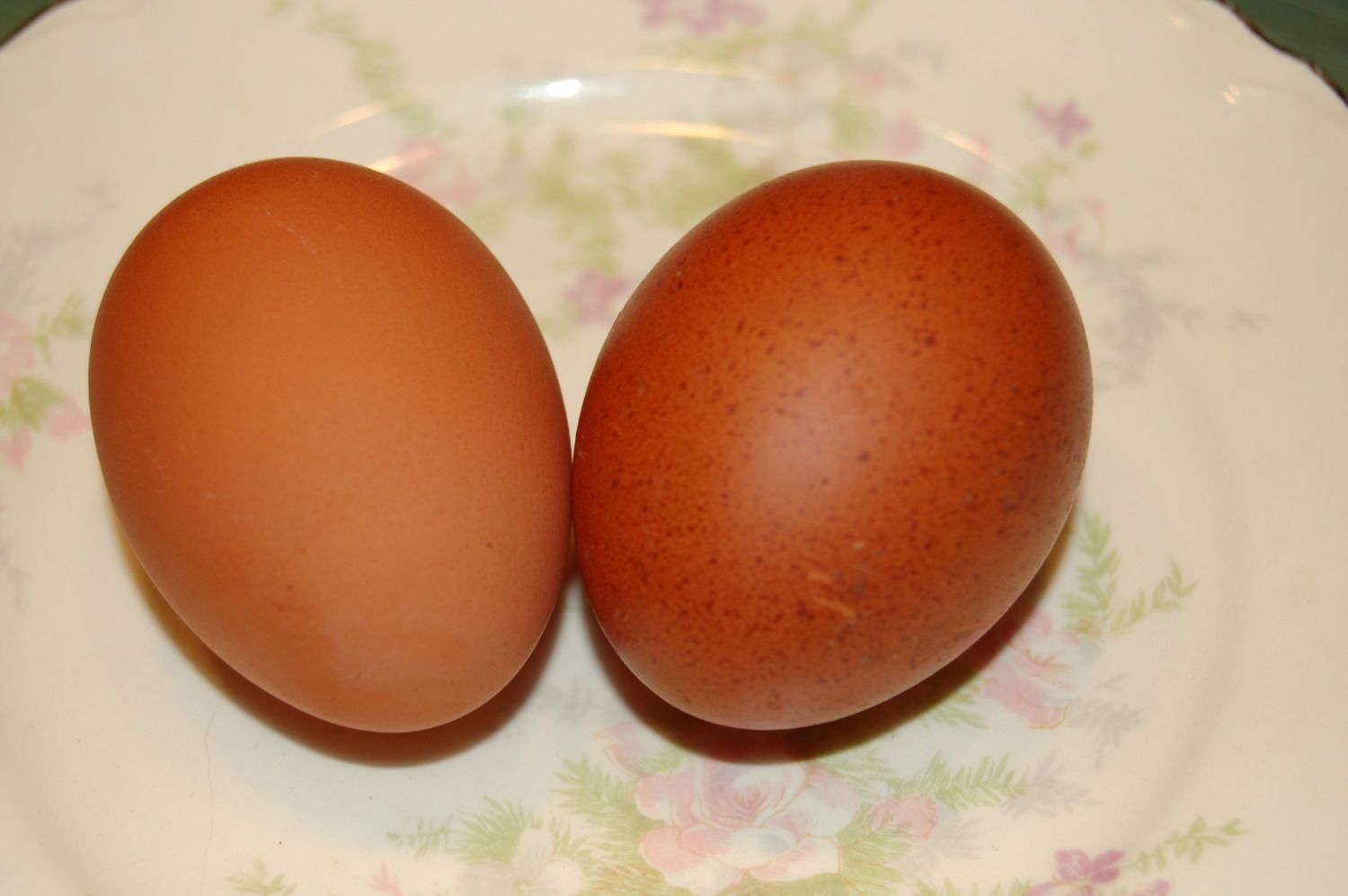 These are my Marans x Welsummer babies that are about 5 months old now. I love the color and size of my Marans eggs, but wish they layed more of them. I also love my Welsummer eggs, but wish the birds were a little less flighty,and I also prefer blue birds. Can't tell you what the eggs are like yet, because they are too young, but here are some pics of the birds. Sorry for the poor quality photos-my iphone is so darn convenient,but doesn't take the best pics in low light and on moving targets! The barred pullet is a marans x lavender Ameraucana,with a Delaware hen, Splash Marans and SS butt in background. I have 2 of these blue cockerels. Had a black one but gave him away today. Blue cuckoo and spash marans in background are the dads. Black copper marans is also one of the dads. Egg on R is (I believe) a welsummer egg that the babies would have hatched from.