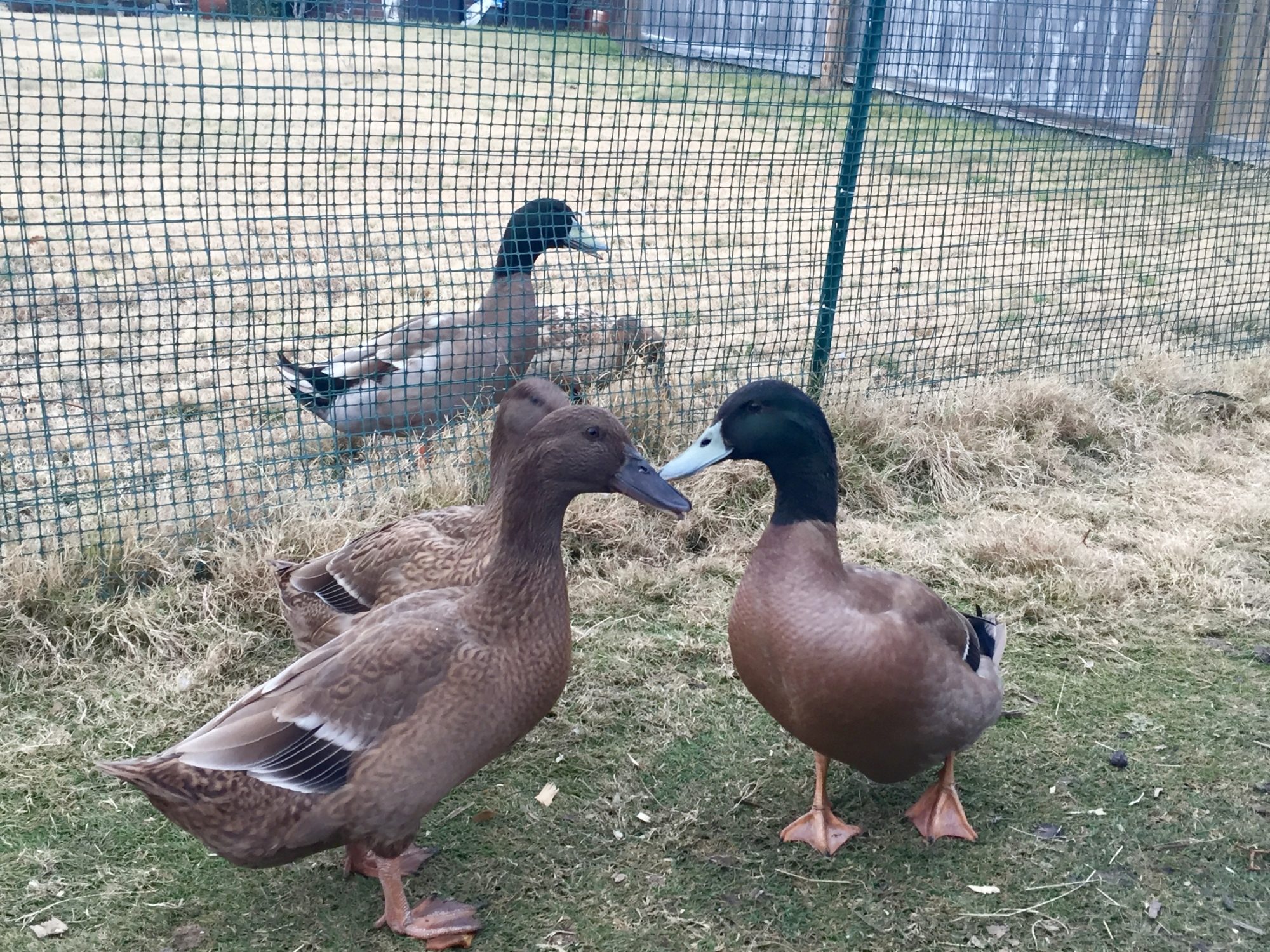 These are my 3 mixed-breed girls (Cayuga mom, Rouen dad):