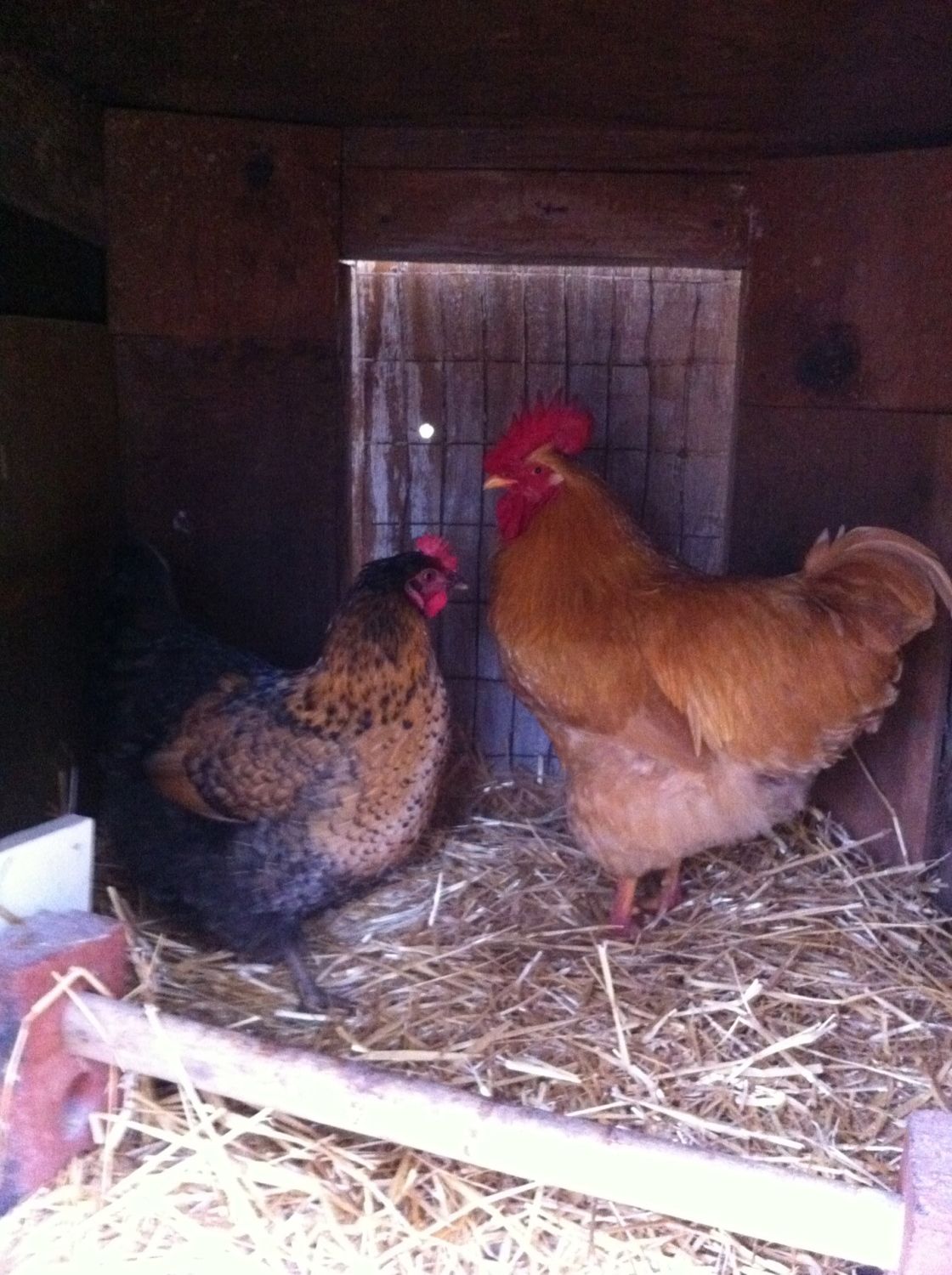 One day, the legbars got their gate open, and a few girls got out. So I decided I’d just leave them out with their old rooster.