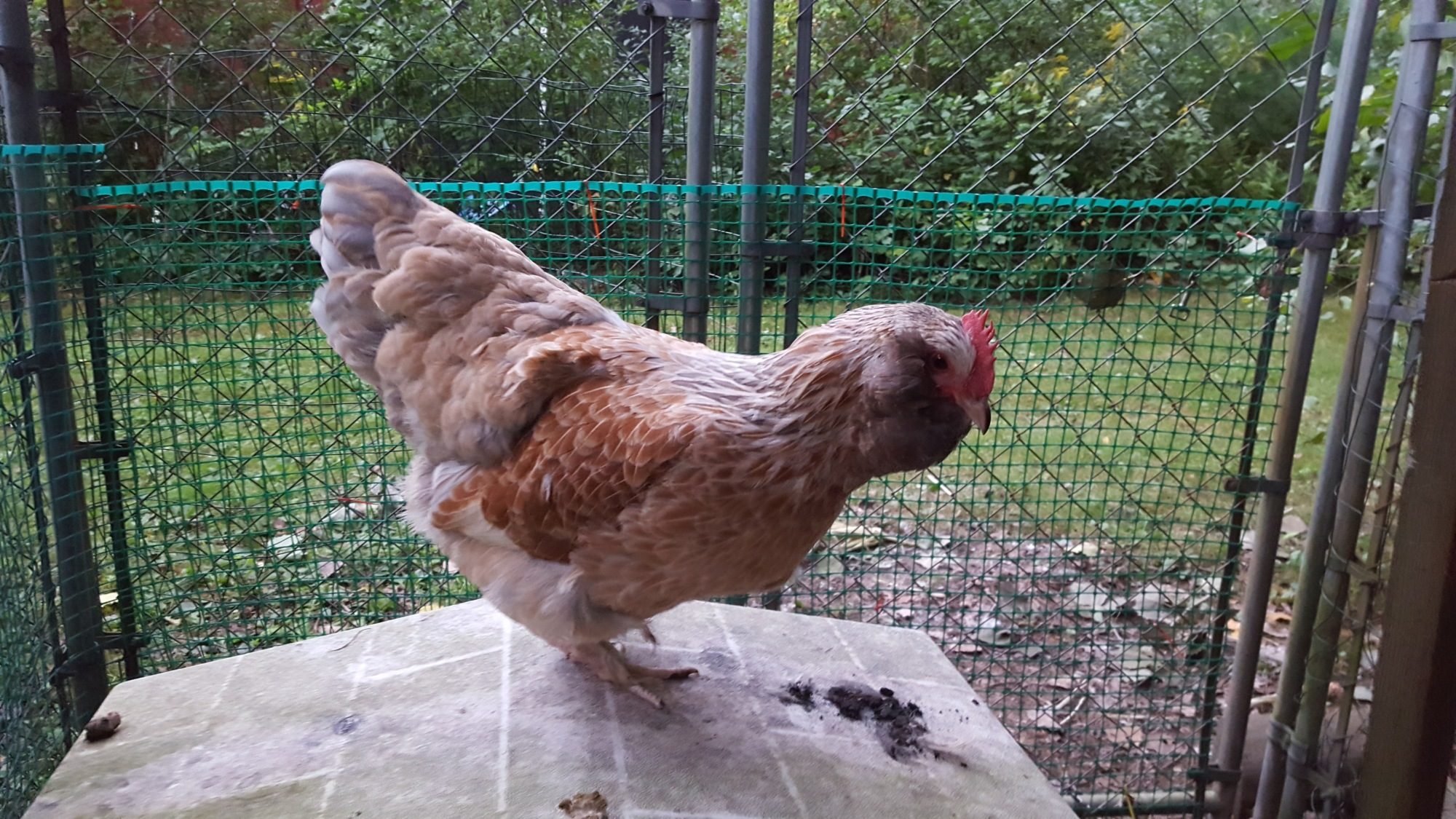 Pretty mixed breed pullet (75% Faverolles, 25% EE) for sale. 16-18 weeks of age, about 25 mi NW of Boston. Will lay brown eggs like her mother. Unfortunately she does not have her mother's sweet temperament so she must go.