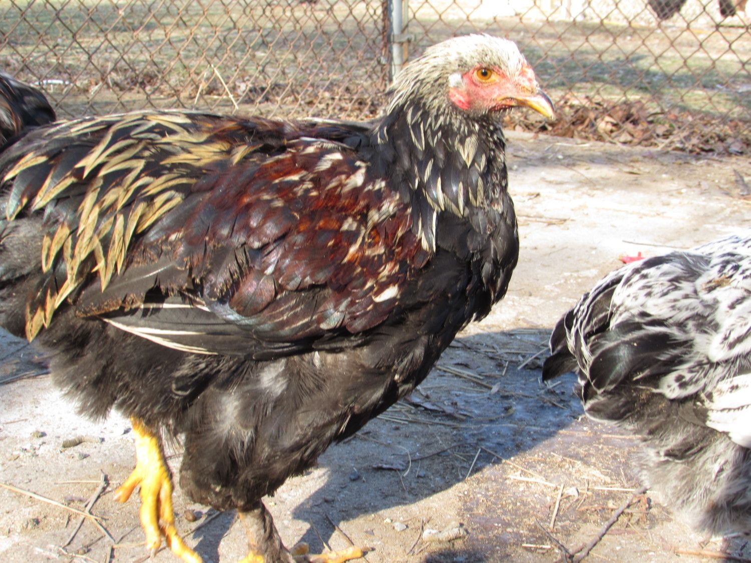 Gotta love the awkward teen phase!Hi everyone! to me a barnyard mix is not different than a mutt breed dog, which I have two of and love to pieces! We never planned on having or keeping a rooster, but the neighbors love him, so he got to stay. We put eight eggs in the incubator and only one hatched, and it's a roo,Sunshine (optimism of hen took over in naming process) of course! haha! we are going to keep him and see how it goes. His Dad is and EE (RIR dad and Americauna mom). Sunshines Mom is most likely our Splash Maran since he has so much white in him. Our other hens are BC Marans, and a Cuckoo maran/Rir mix. here are some photos, hoping he keeps the white!