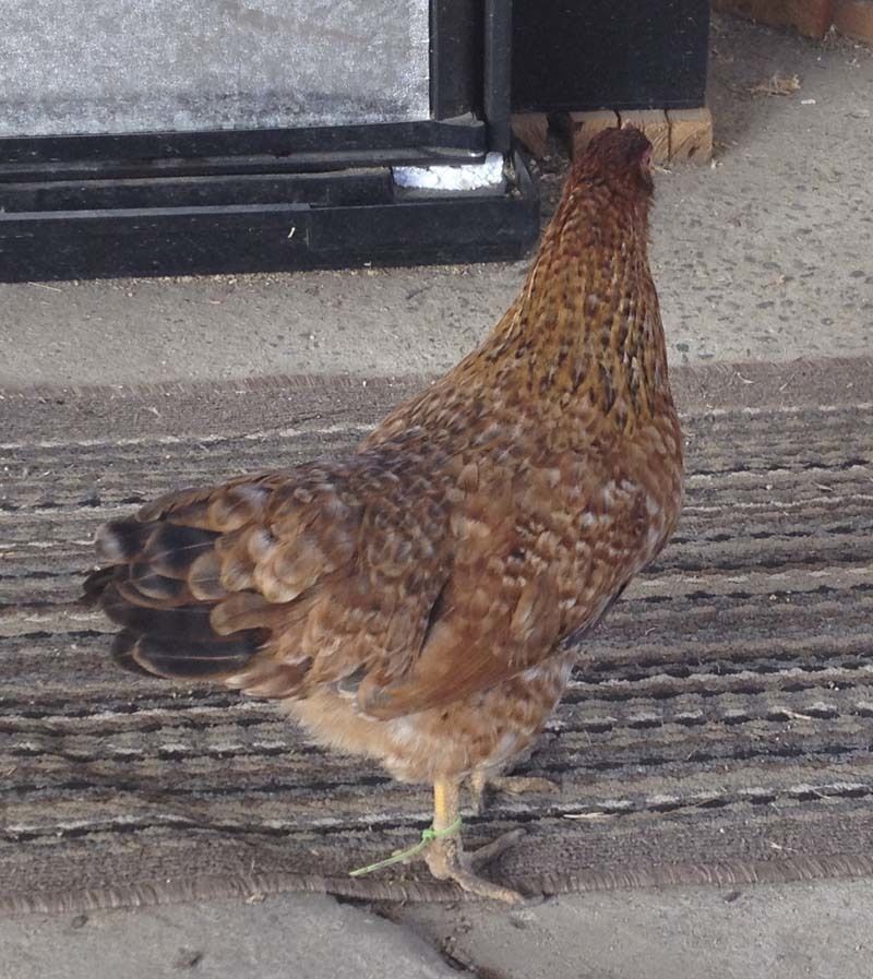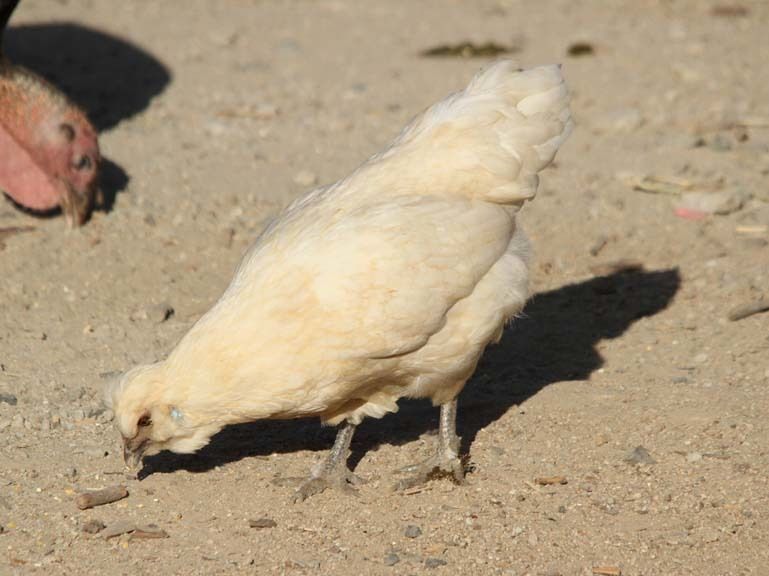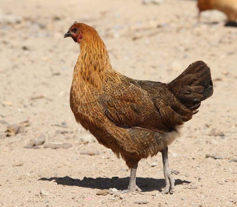 Production Red is most like the mom. Everything that I mixed with my BJG's were black.A quick update on my "Mystery Mutt". I've posted some of her photos on here before, since shortly after she hatched. This is my bird who is not supposed to be able to be barred, but ... Her father is a mix breed that looks like a New Hampshire, or a Jubilee/Buff Orpington mix. Her possible moms are a Production Red and a Black Jersey Giant. She looks very similar to my Rhodebar pullets now, except they don't have the little bits of white.