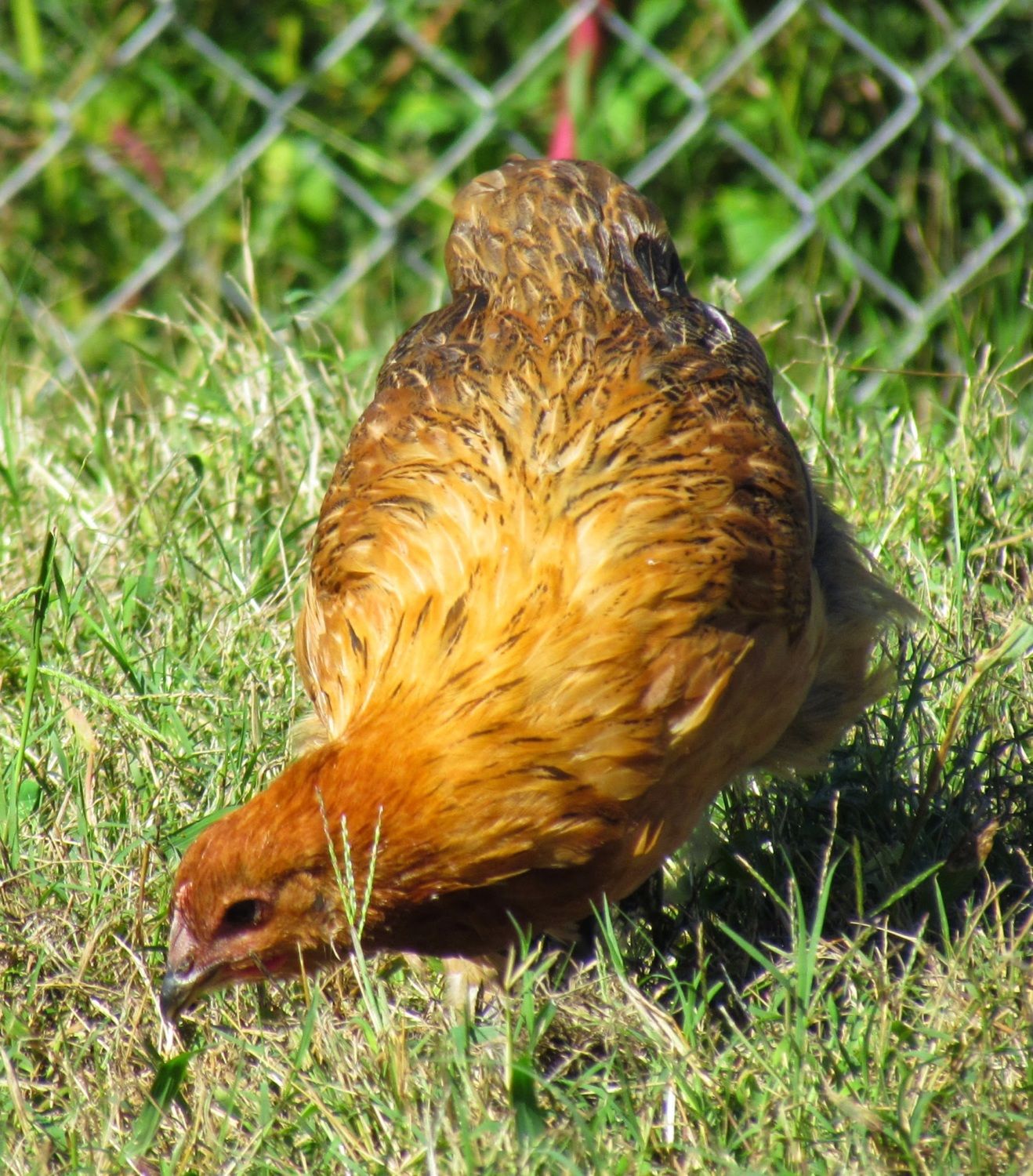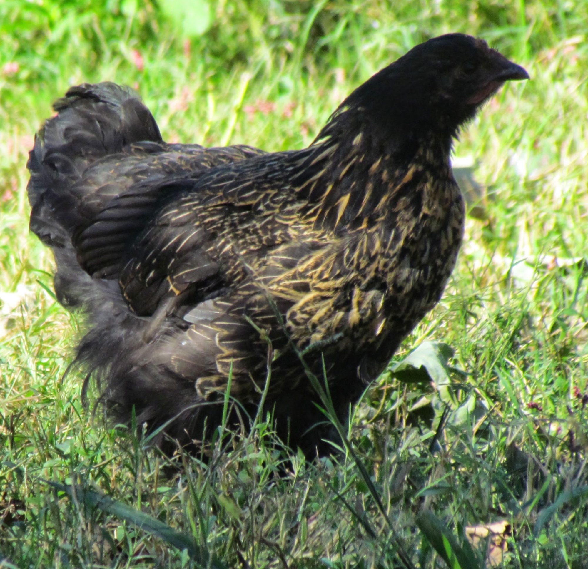 Speckled Susses/Red Sex link. see how some of his fetehrs have a gold/red tint to them? pretty neat!