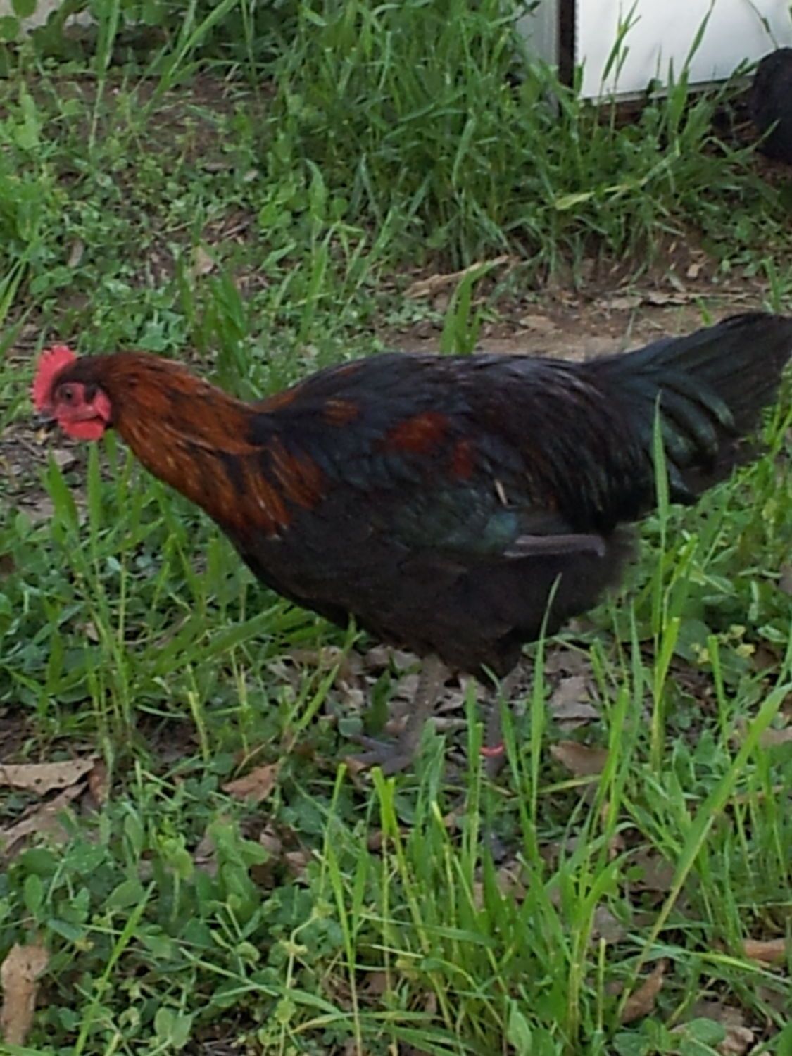 They are actually australorp roo over black sex link. The two boys are the only ones who have any red in them. They do have that purple green shine to there feathers. They are super sweet and easy to handle. The one boy in the picture has the most red so far and is only about 3 1/2 months old. I will post some more pics of him when he gets a little older.