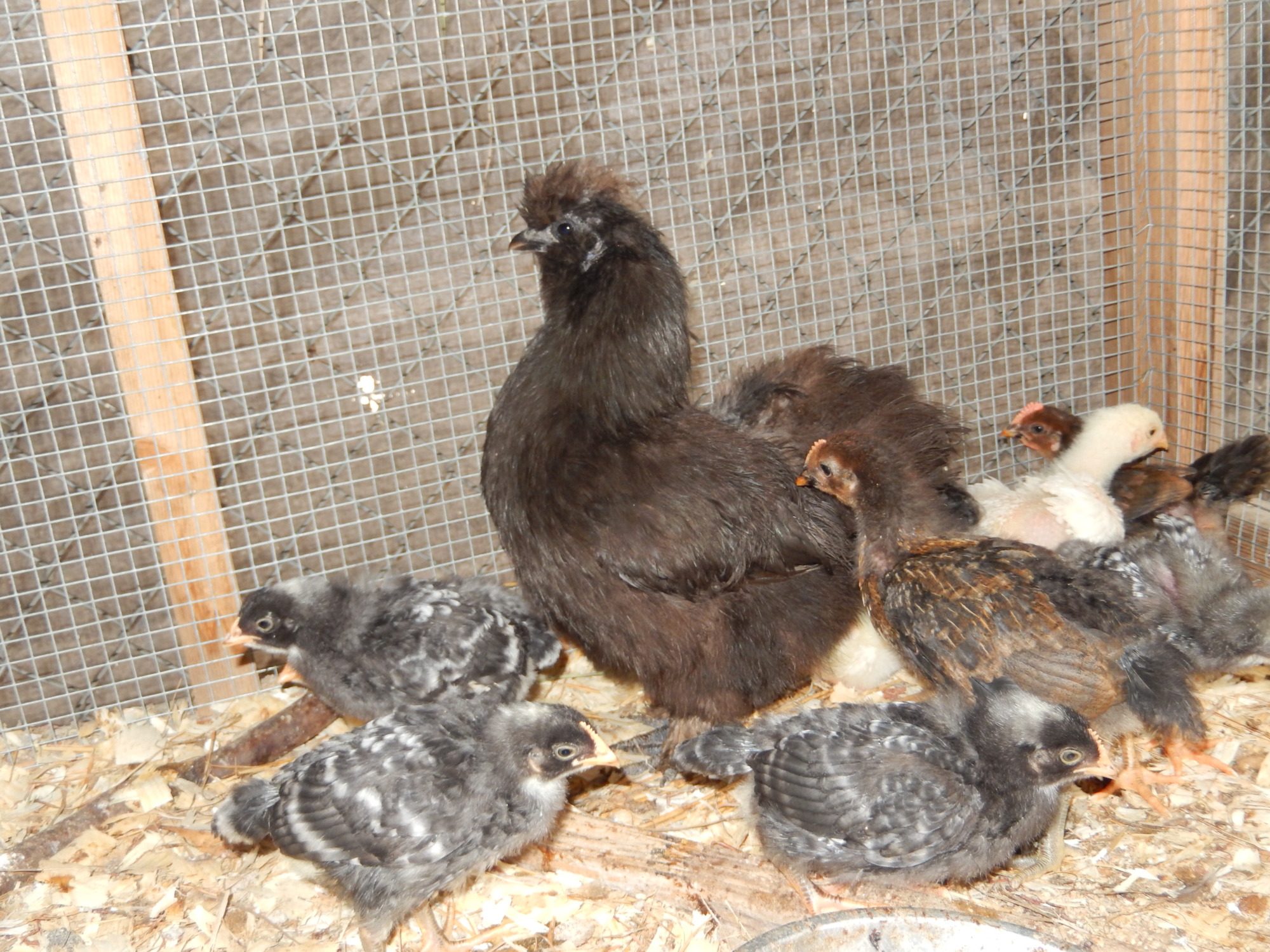 #10 momma silkie and her adopted babies.