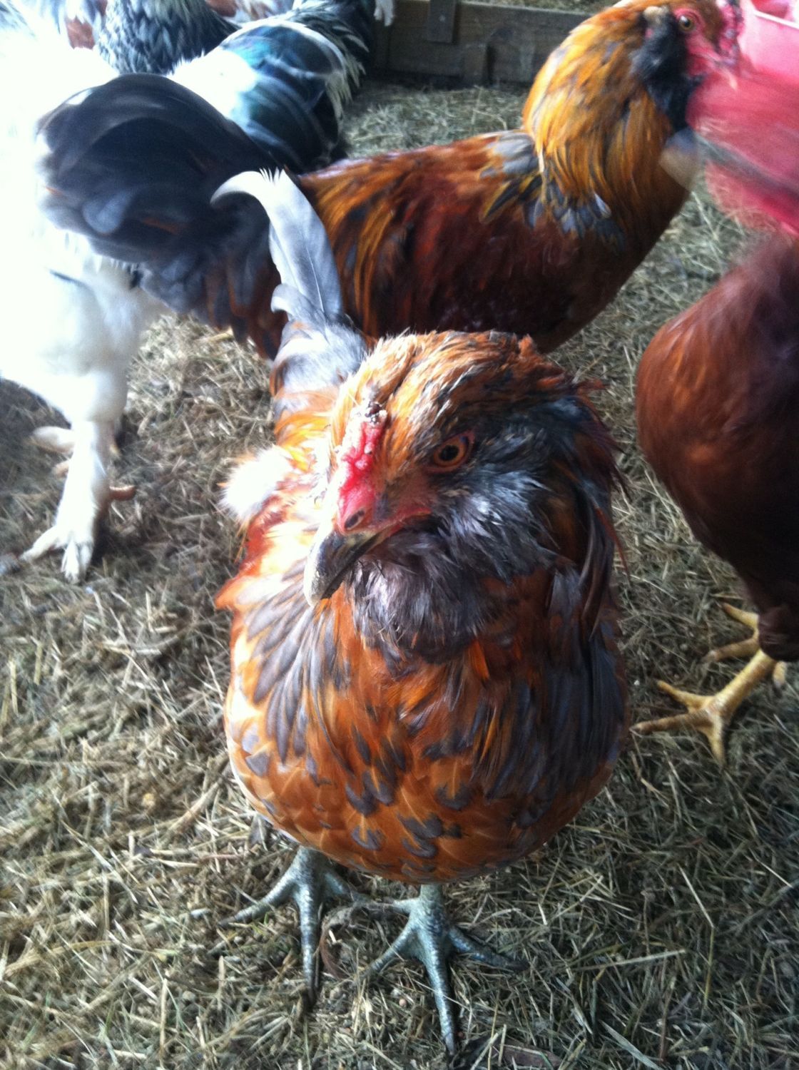 it looks like an Arucana.. Easter eggers are a cross of them and another breed to get the multi colors. the cheek feathers and it will most likely grow like abeardwhen it's older. blue or green eggs... I have 4 of them... great . birdsLooks like an Easter egger.![]()