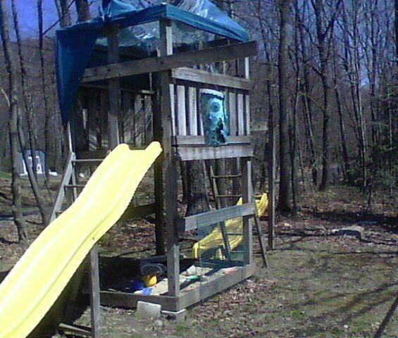 Then, I thought of our old 'treehouse' as a base structure (nobody's particularly handy around here). Now that I have a little brother, it is sort of used again, but...