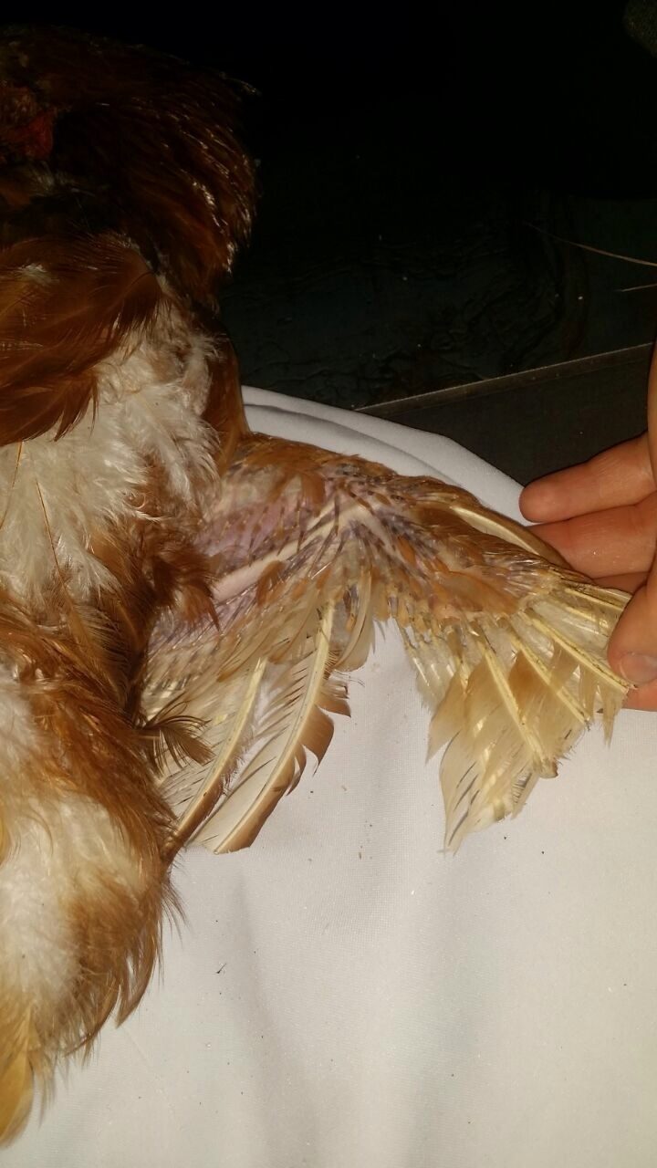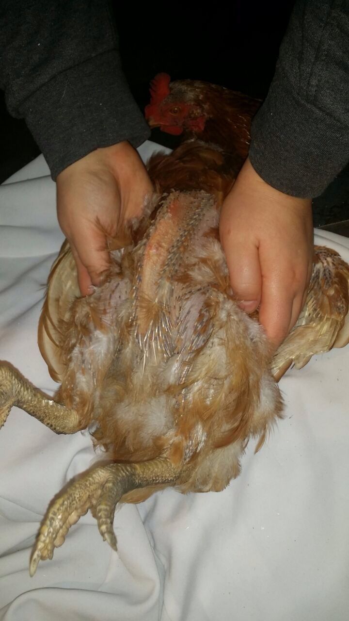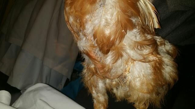 This is Celest, my warren. Rescued her from meat man about 5 weeks ago. She's been laying very frequently and now we haven't had an egg for about 2 weeks.. She looks fluffed up, isn't as active as she normally is but the weather here in the uk isn't great! The other warren has lost a few but nothing like this. Her wing feathers have gone, all under her tummy, and on top of her head too. She looks so miserable!