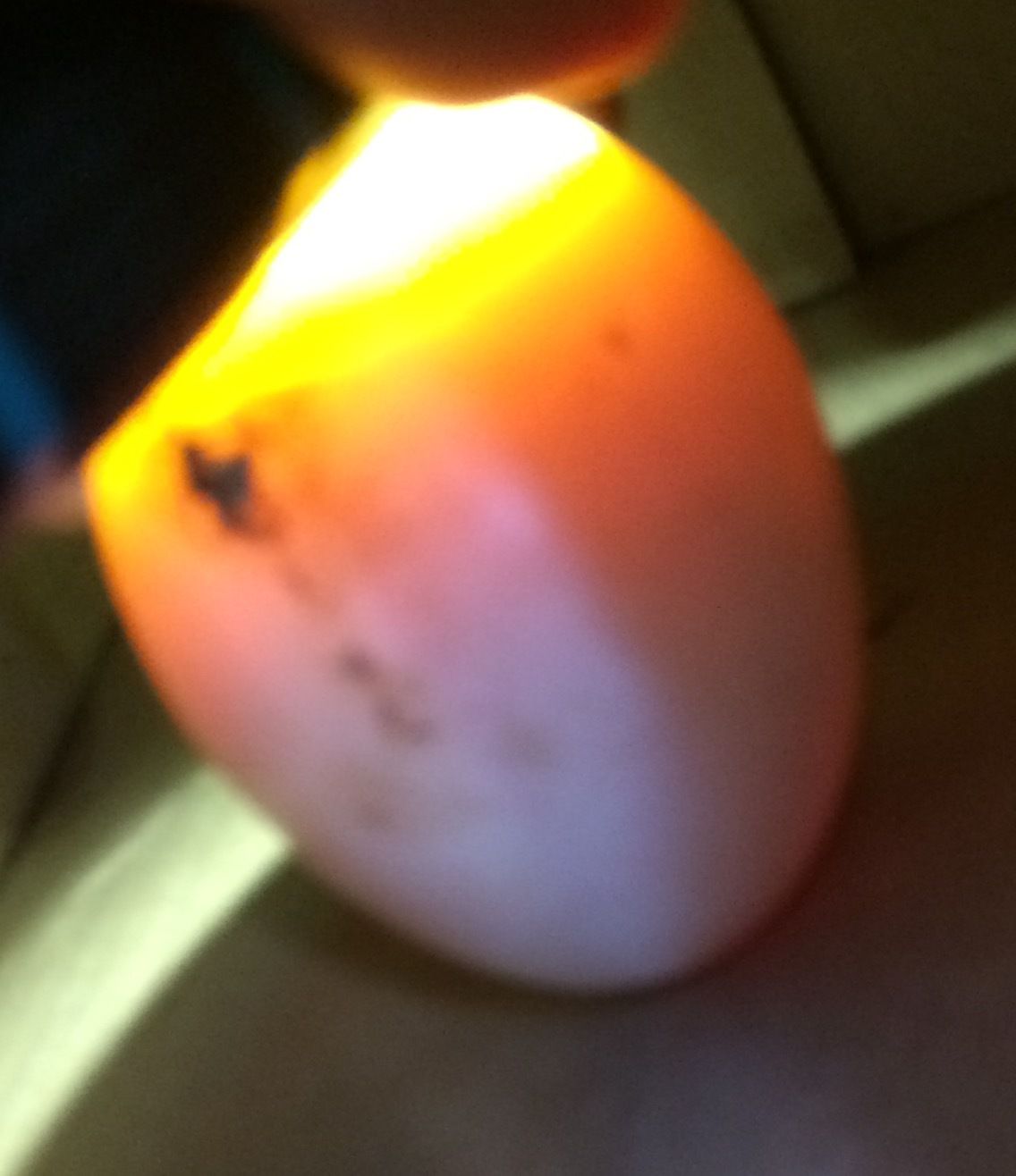 These are my eggs today. Yesterday Cynthia didnt get off the nest once, not even to drink. All of these photos were taken the same way even though some look like there is no light shining on the eggs. Seems a bunch haven't developed at all, but what do the pinkish ones look like to you? And what does it mean when they're just solid with no light able to shine through? Really hoping some will develop!