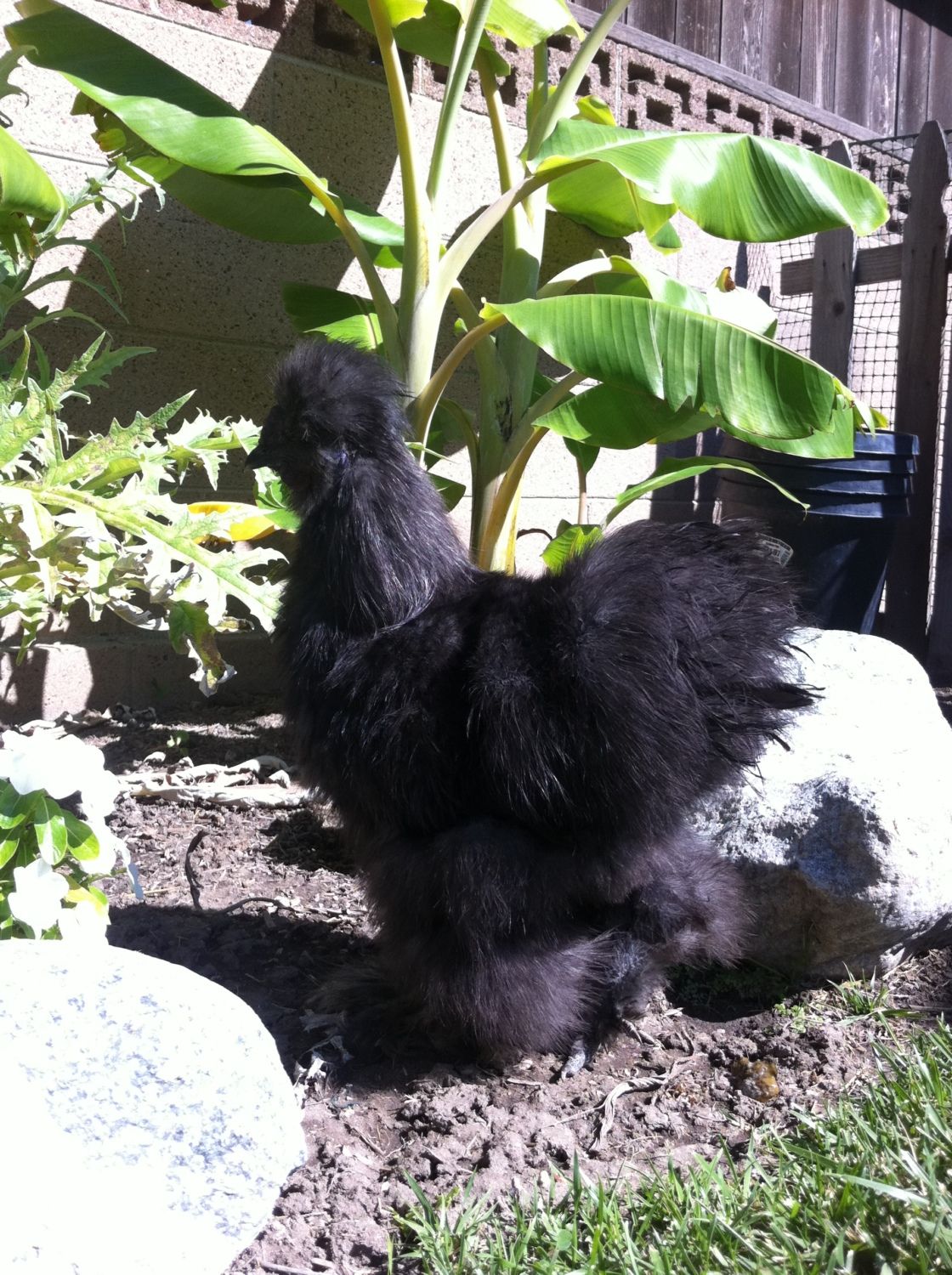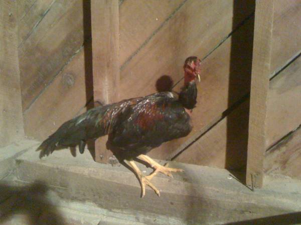 This is my BBR Pheonix roo, he is a smart boy, doesn't like being held, but has never been human aggressive or aggressive to his hens or babies, but watch out if you mess with his girls, he will spur you. Our drake had to learn the hard way. He is always on guard, always a gentleman. Will not eat if you throw out a treat, always gives it to the girls and even the babies. I haven't named him really, I just call him daddy, nothing else will ever stick, lol Oh and he's about 2 years old, I got him from a neighbor, believe it or not!