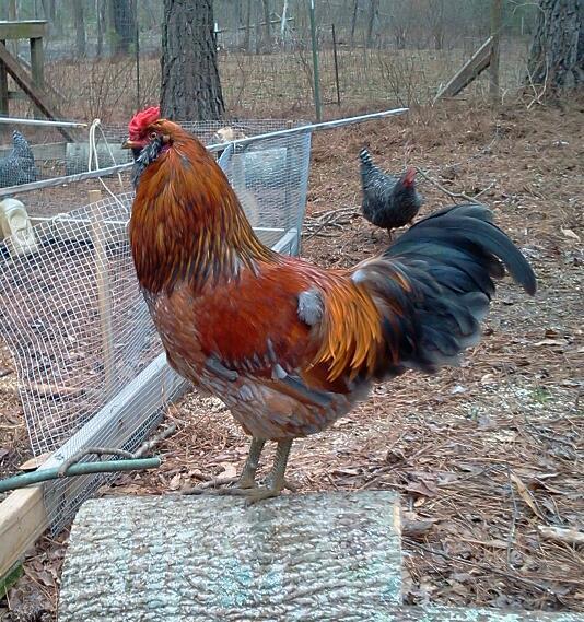 Personality: A young gun who is just realizing what all his duties are about, such as breaking up hen scuffles, facing off against the cats (that are on the other side of the fence), beginning the day at 5:30am, and lookin' good in the middle of the yard!