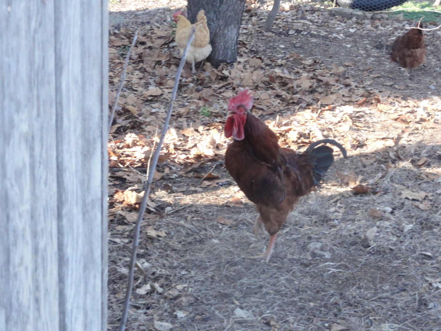 Personality: A young gun who is just realizing what all his duties are about, such as breaking up hen scuffles, facing off against the cats (that are on the other side of the fence), beginning the day at 5:30am, and lookin' good in the middle of the yard!