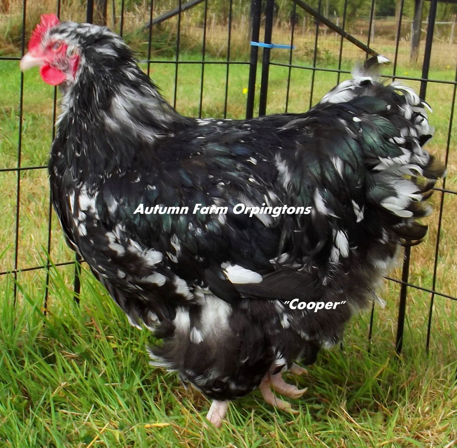 This young Spangle/Mottle English rooster was said to be 7 months old and actuality he is almost 5 months old according to our records.Sorry for the mix up.