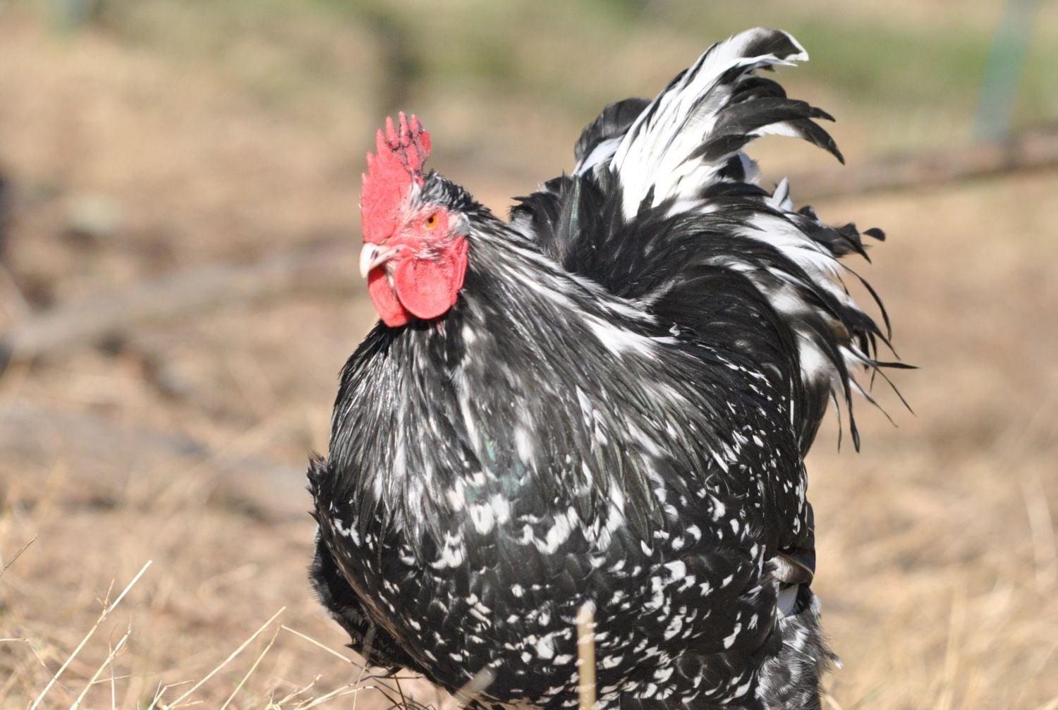 Hefner patrolling the yard and keeping watch on his ladies. First day of sunshine we've had in weeks and the chickens are loving it.