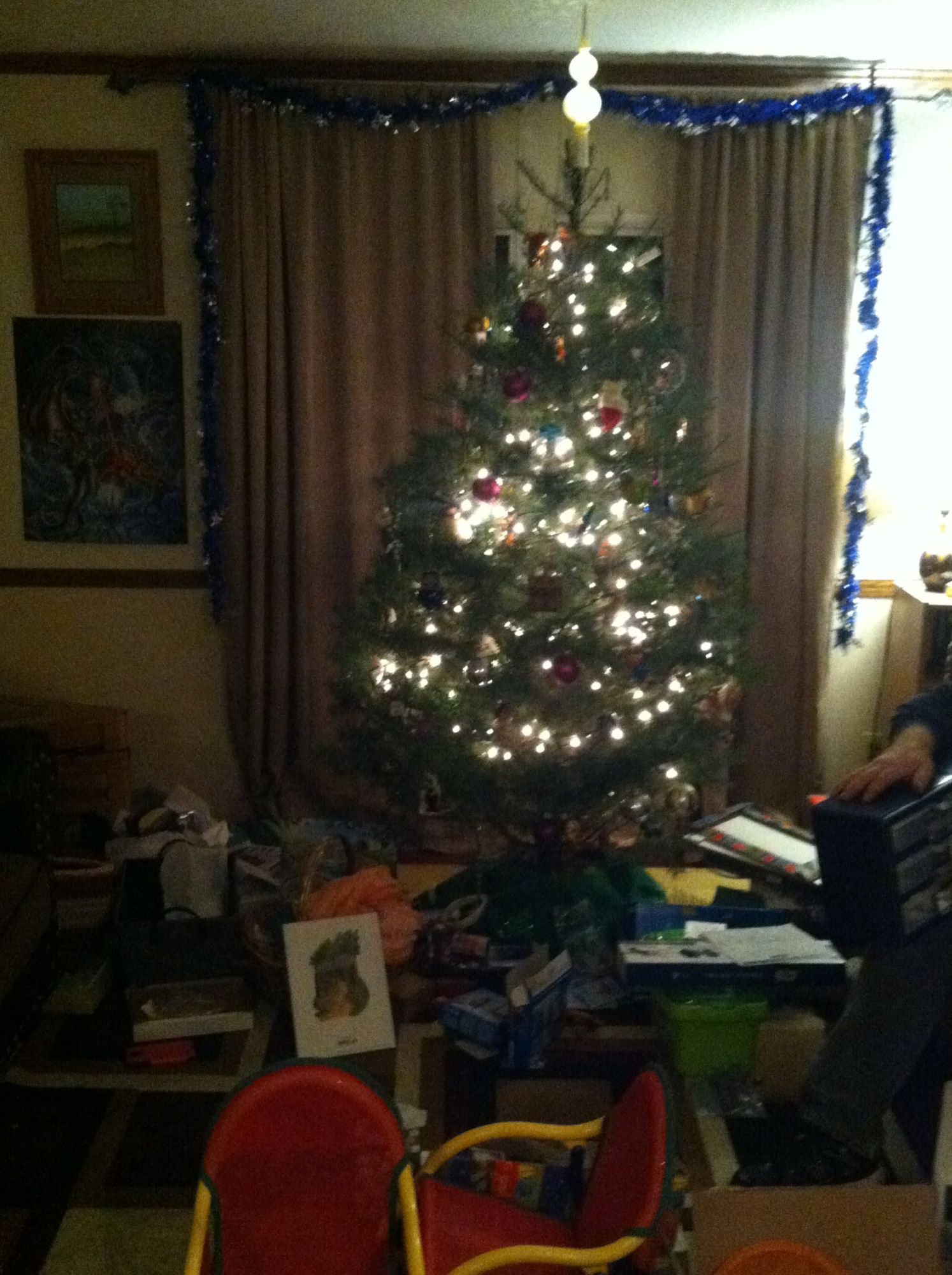 This is our free Christmas tree we got from Marvin's on Christmas Eve