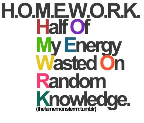 Dear Homework, I already have chores and other things I need to do at home.If anything THAT's homework, so do I really need you too? Sincerely, Americano Blue