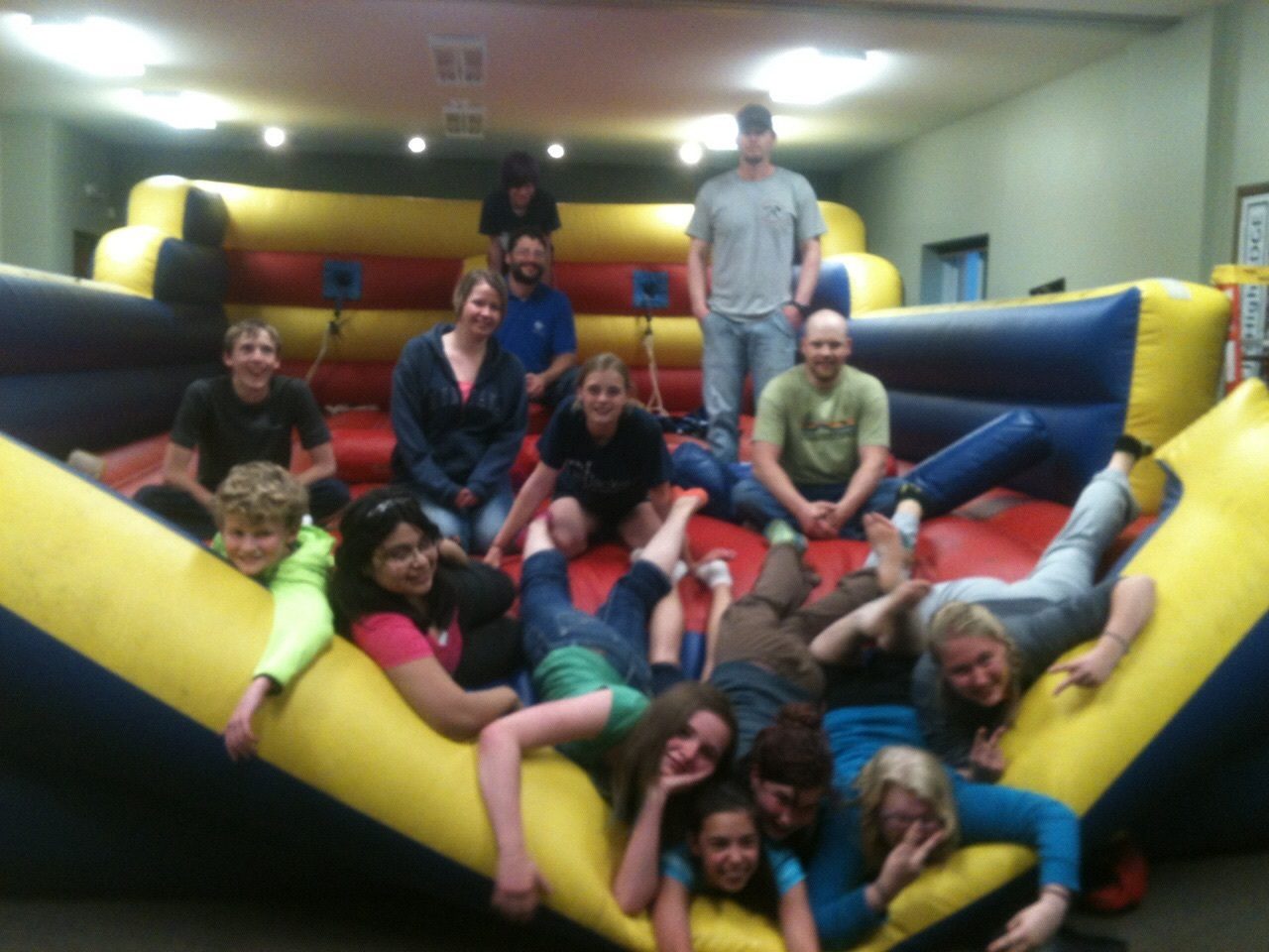 When I would lean against the wall of the bouncy house my teacher Steve, (the one in the back in the blue shirt) would go on the outside of the bouncy house and purposely run into the wall behind me and I would fling halfway across the bouncy house.![]()