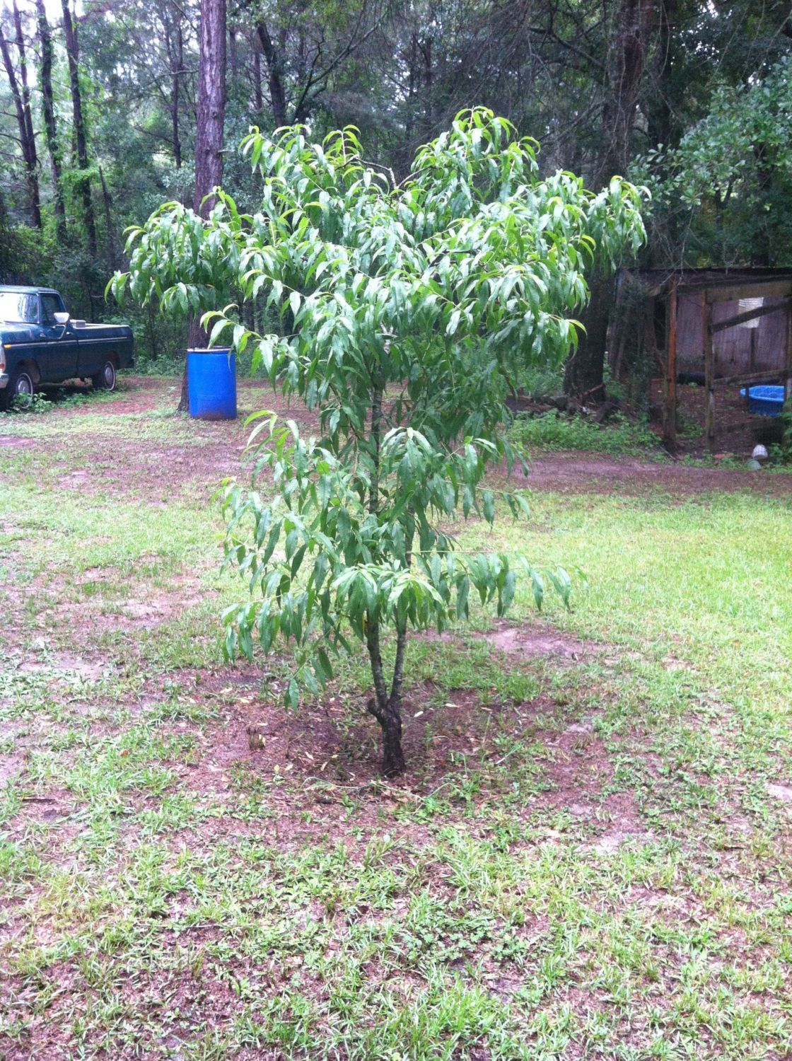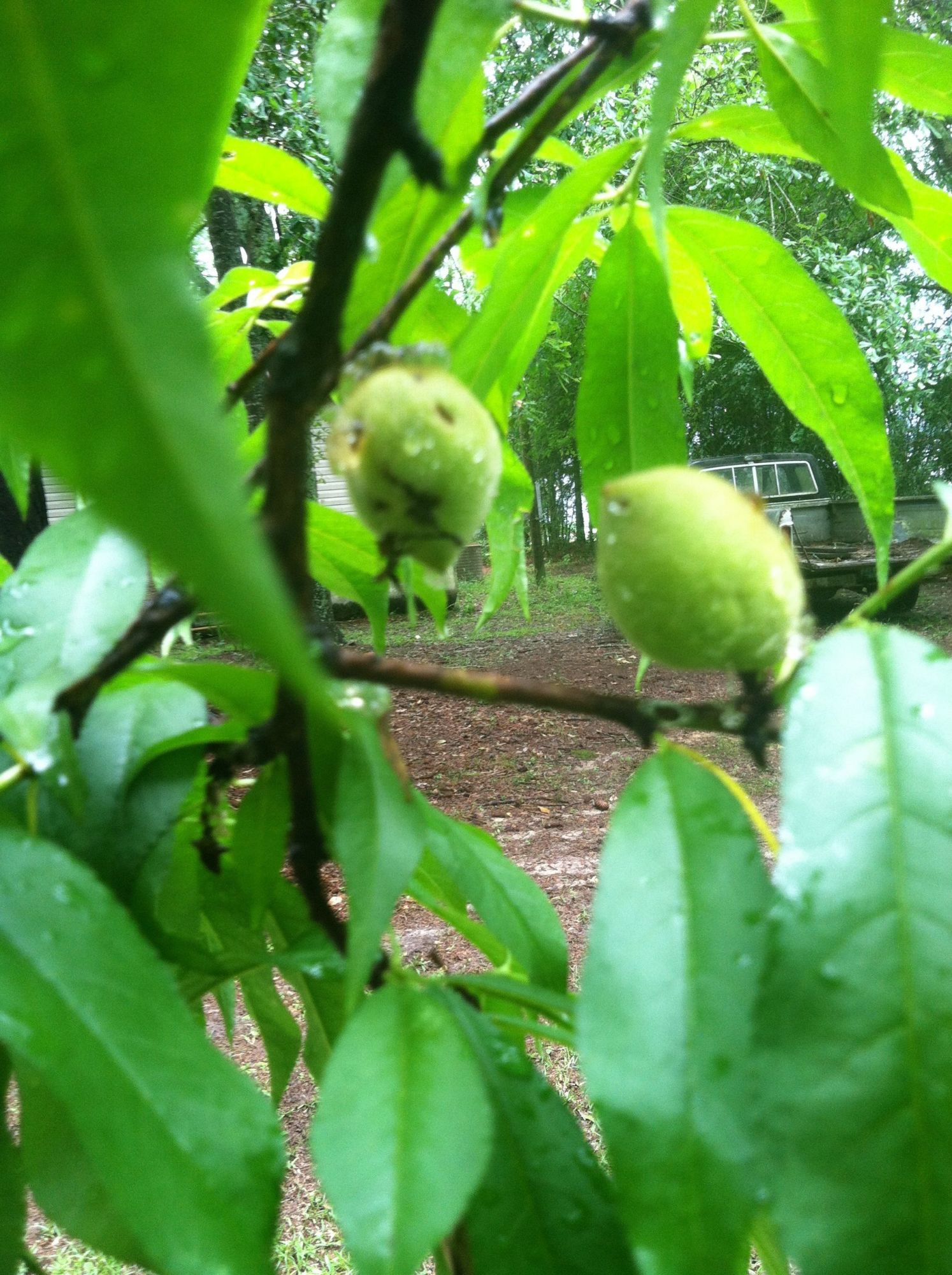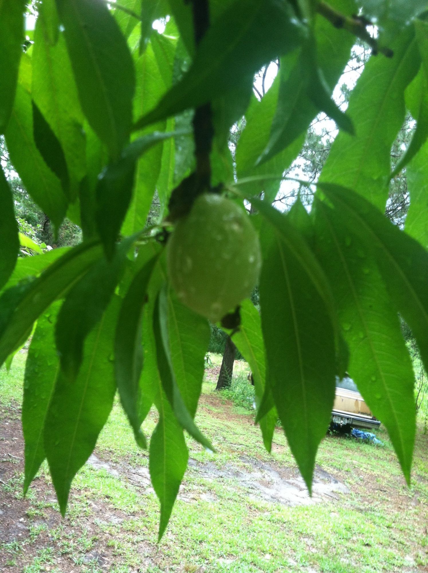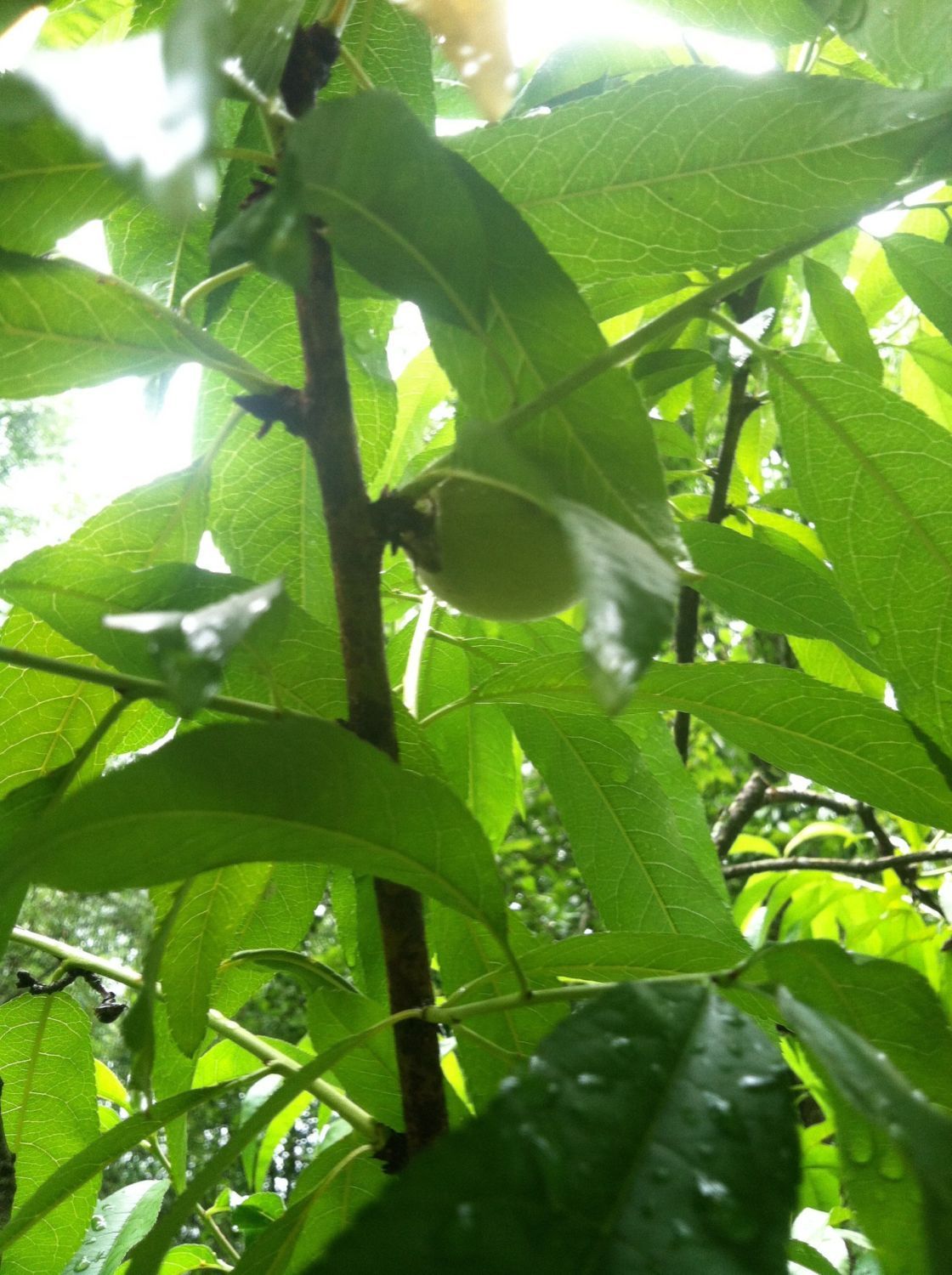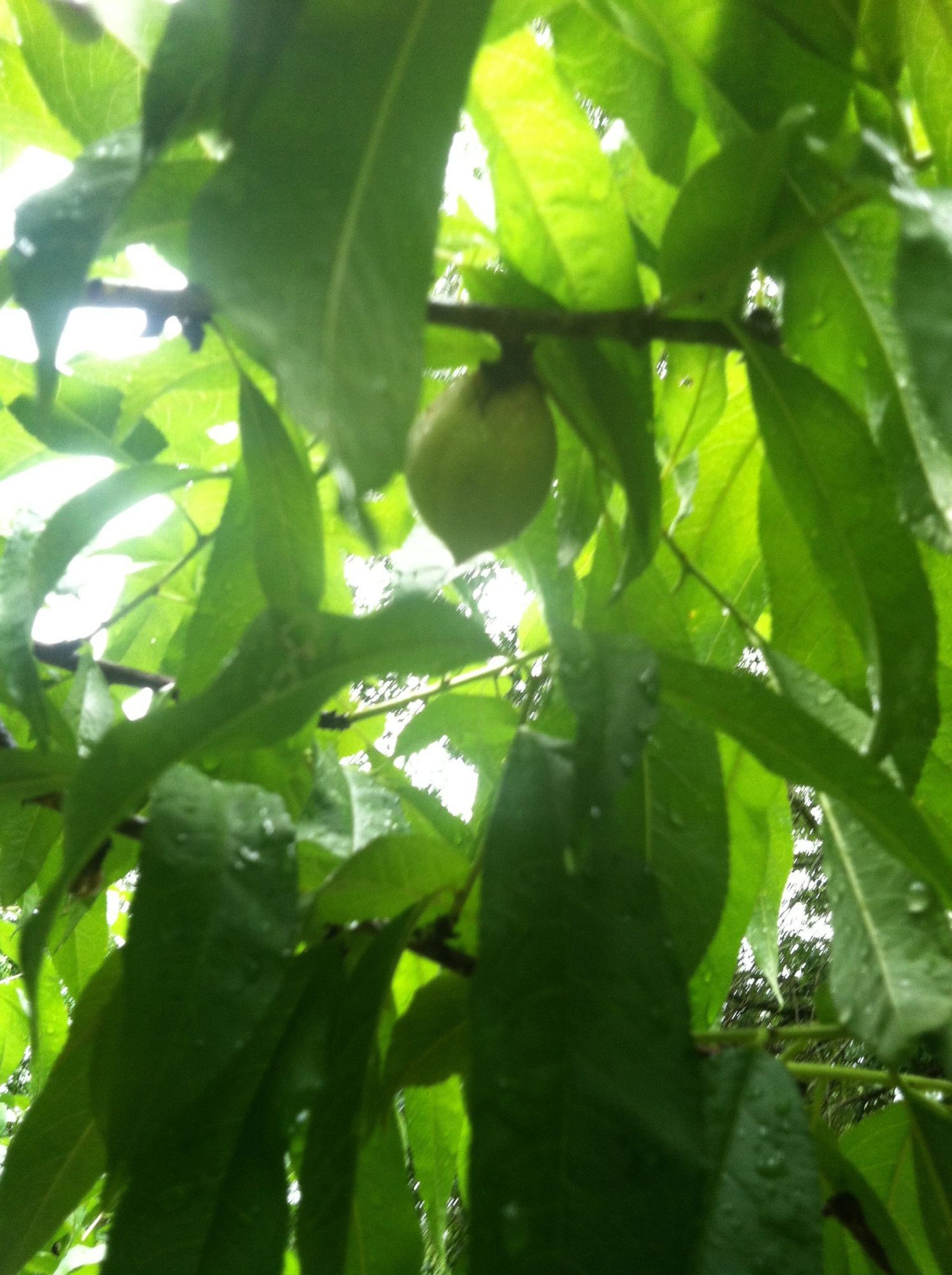 This is my 11 or so year old peach tree I started from seed, it happens to be the only (outta three) peach that made peaches this year (well not exactly true, one of my dad's peach trees he got from a nursery a few years before I planted mine has one peach on it) which is awesome cause two years ago I thought it was going to die, when I was pruning it and discovered there were only about three main branches that were alive.