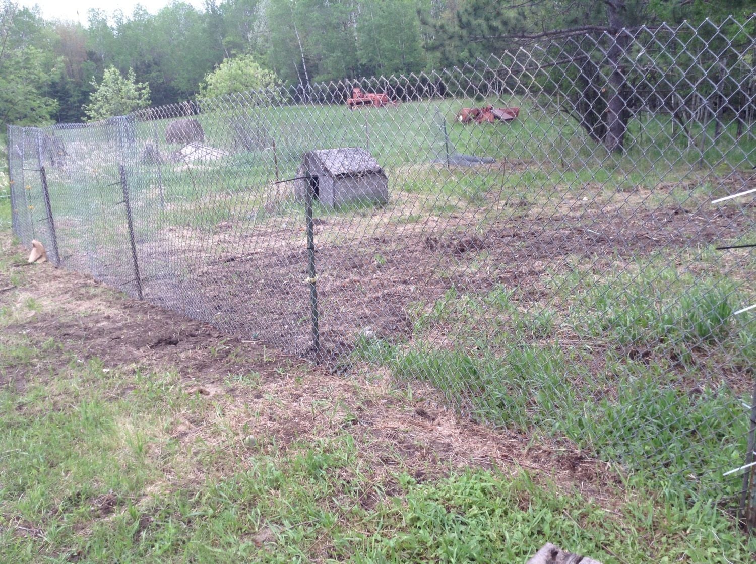 We started putting up the wire for the chicken fence!