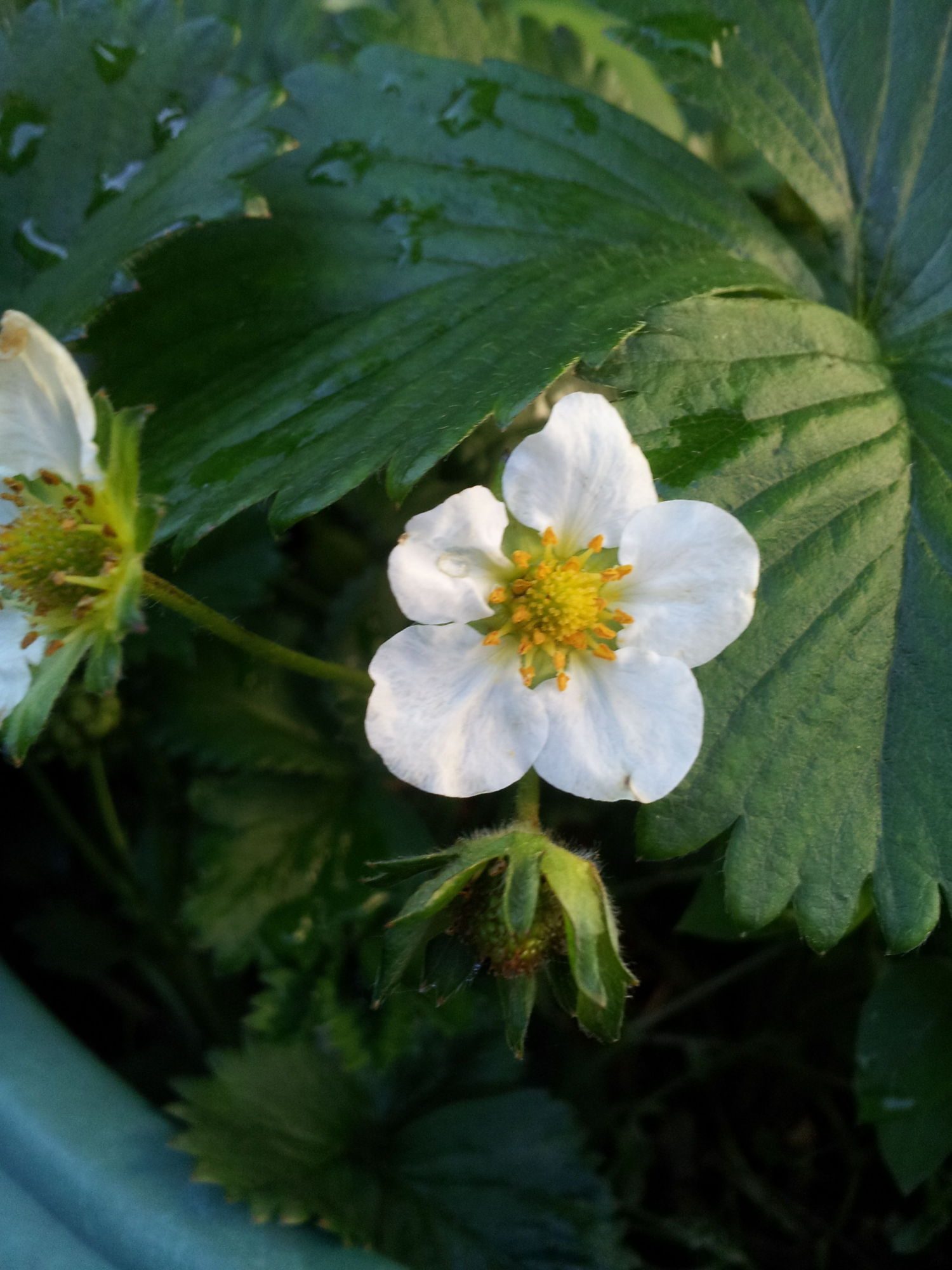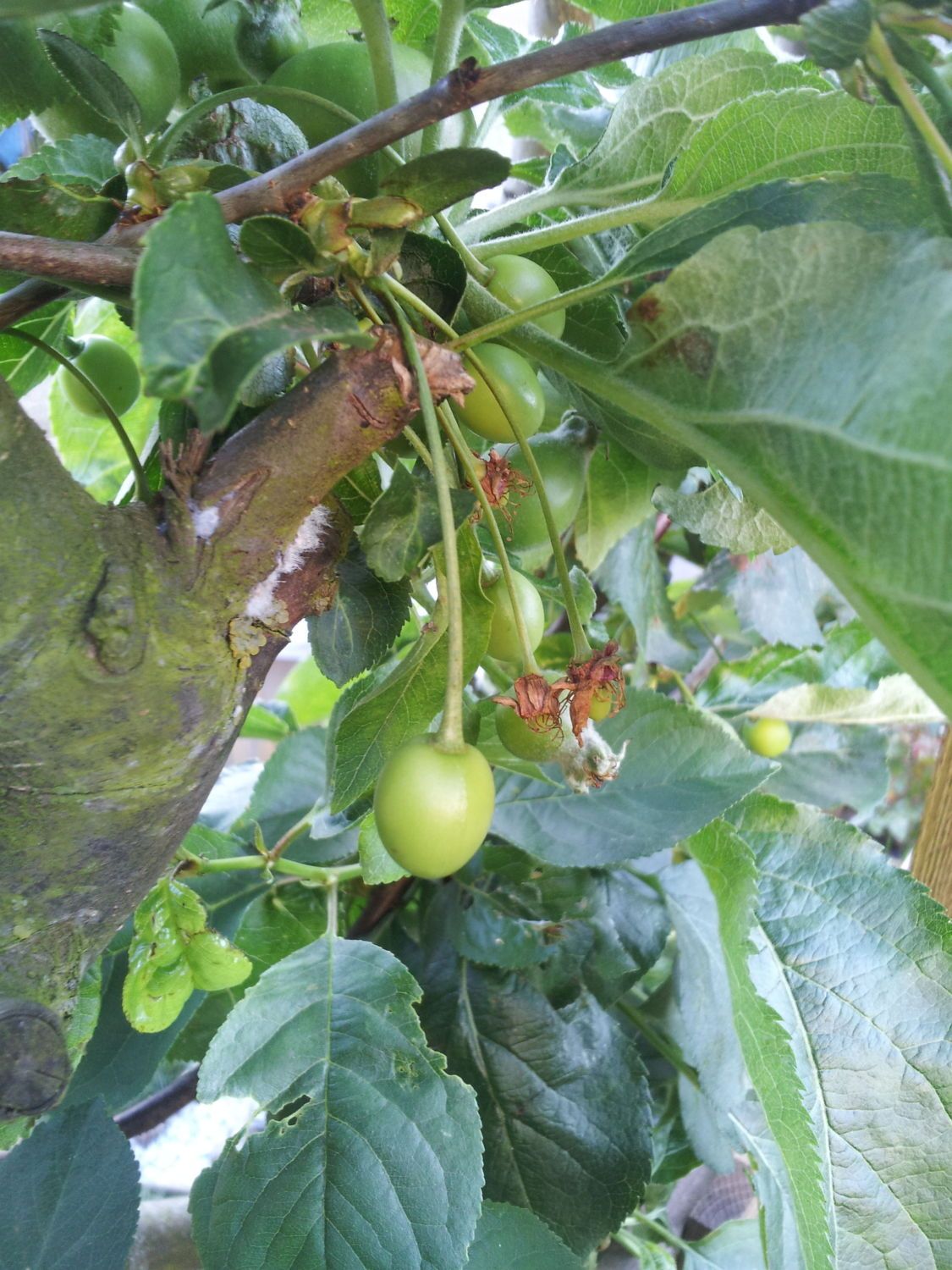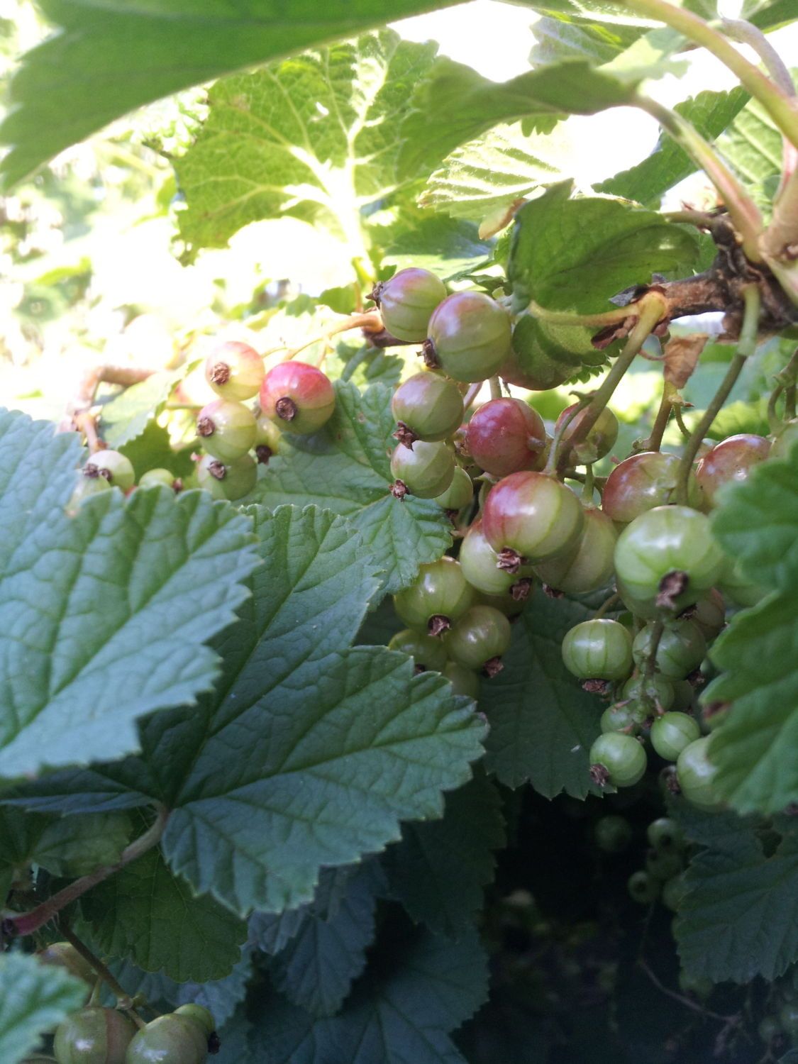 From top to bottom: Redcurrants, gooseberries, hedge-of-some-sort, strawberries, pears, cherries and I think it is a hyacinth. XD