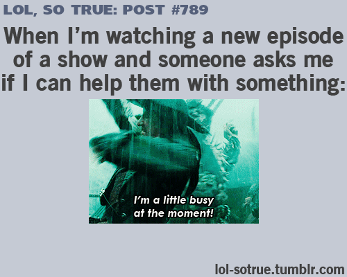 So so so true!!!!! (My family has learned that you should not bother me when I am watching a new episode of Star Wars Rebels, MythBusters, NCIS, or Gravity Falls. LOL)