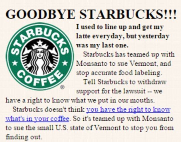 Nooooo!!!!!!Don't team up with Monsanto, Starbucks, I love your frappuccinos!![]()