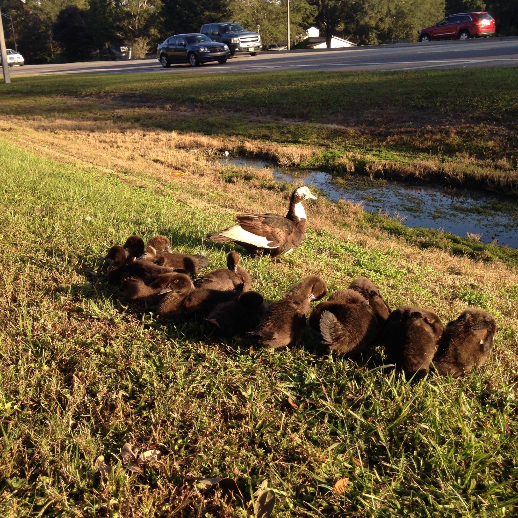 I took this pic Sunday. Yesterday(?) it was a single momma with 12 ducklings! And they let me get really close to them.I didn't have to zoom in at all