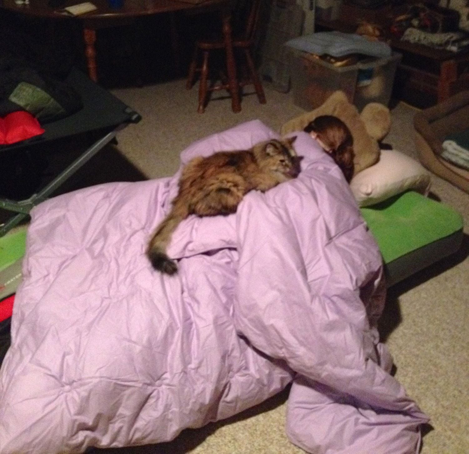 Here's some pics from the trip. I made a new best friend. XD Her name is Sophia and she was my great grandma's cat. (Now she belongs to my aunt.) I've never had a cat latch onto me and love me more than Sophie did.