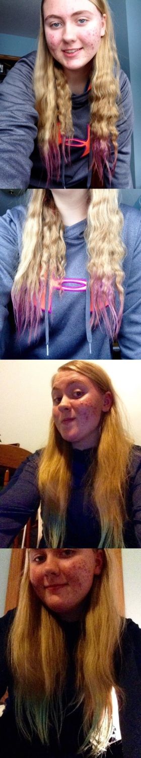I've been experimenting with temporary hair color on the ends of my hair this past week. On Wednesday I did blue, and on Thursday I did purple. What do you guys think of it?