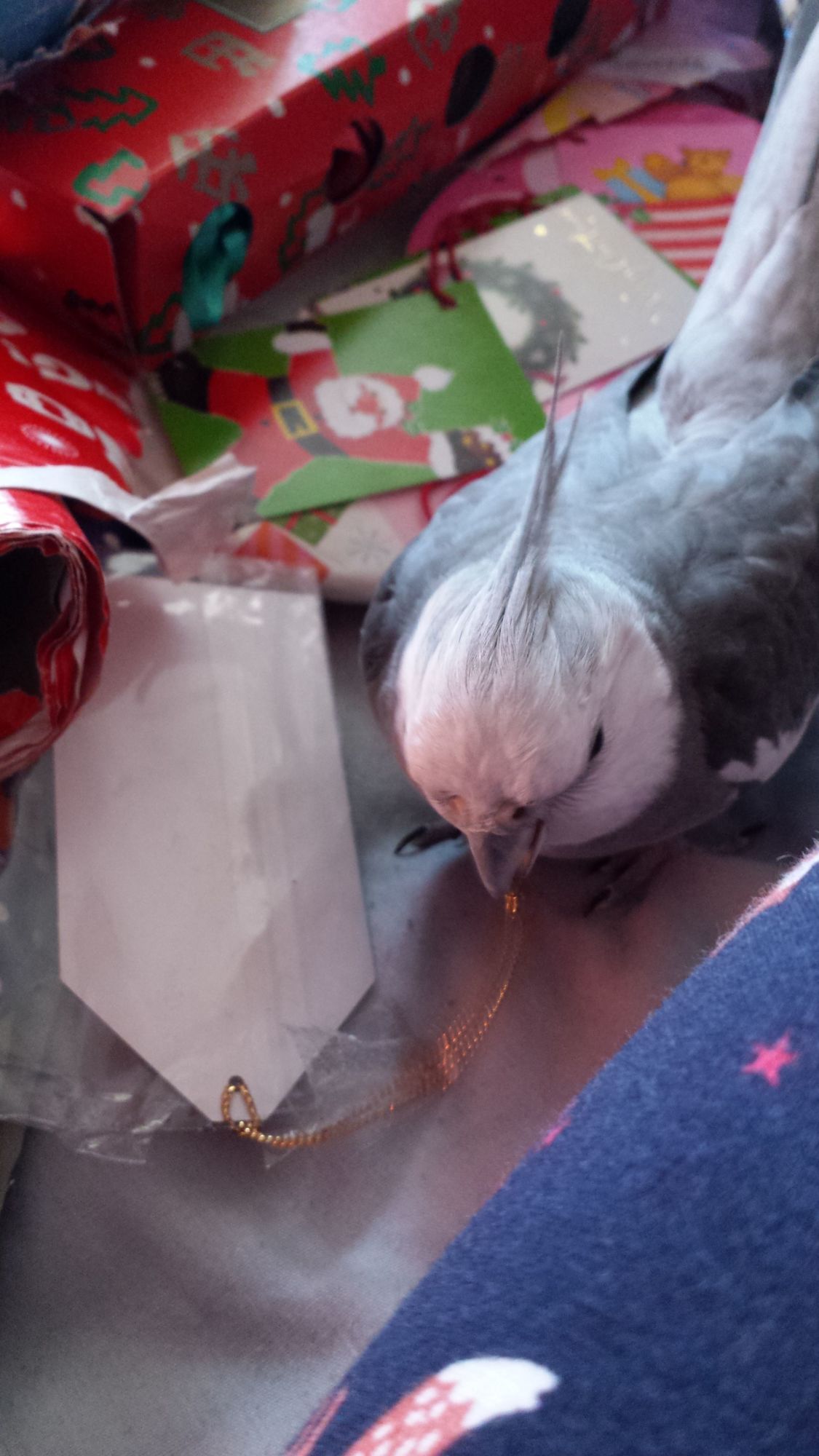He was handing me the tags, showing me where to put the present, and making sure to tangle all of the ribbons up.![]()