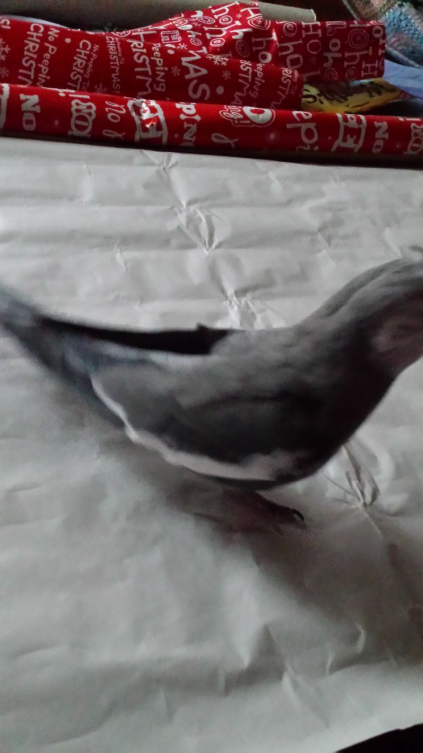 Whilst I was wrapping Dylan's present (yes, Dylan has a present), Pookie decided to jump around... He ended up stuck in the present bag.