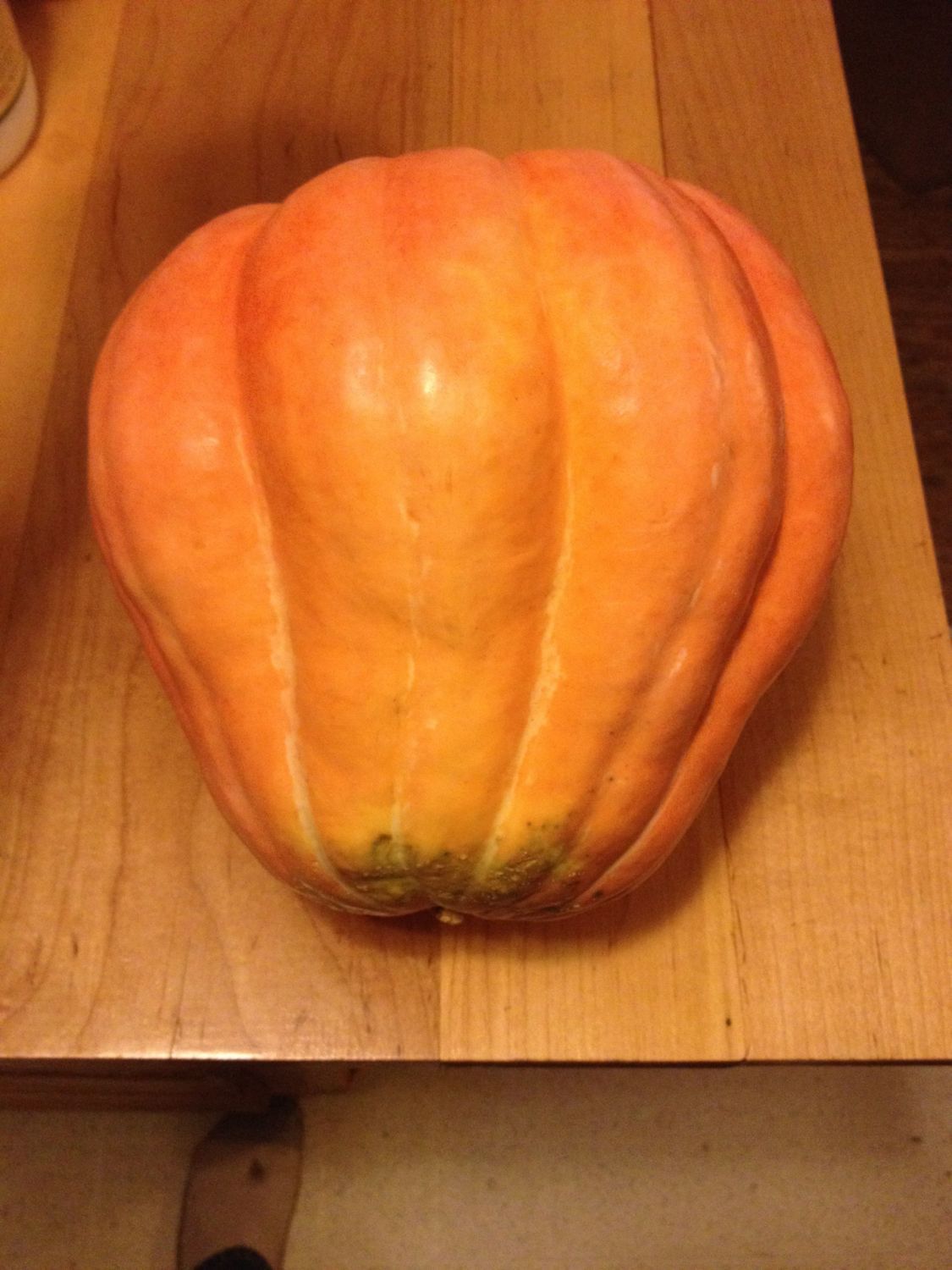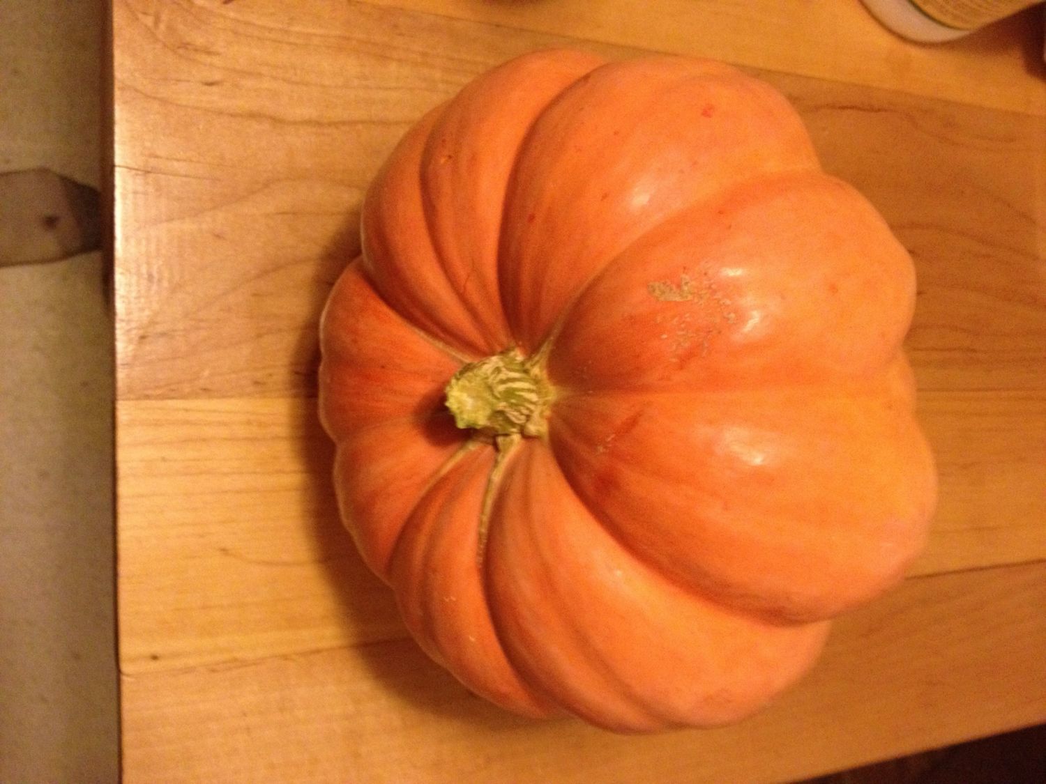 My second brother in law got this pumpkin from a coworker and gave it to us, I think it's one of the coolest looking pumpkins I've seen (and I'm going to have to save some seeds!) and it's more pinkish orange than orange.