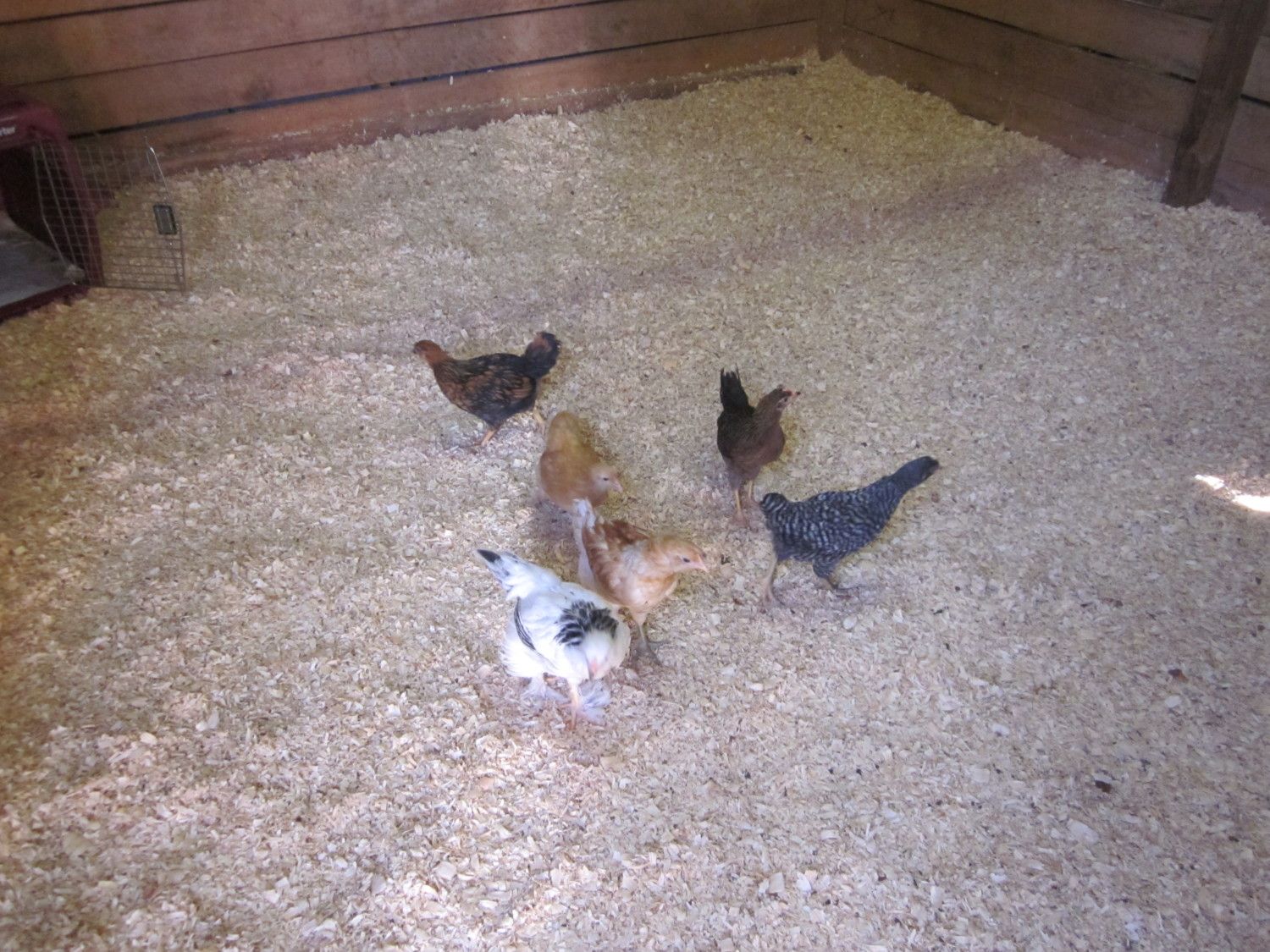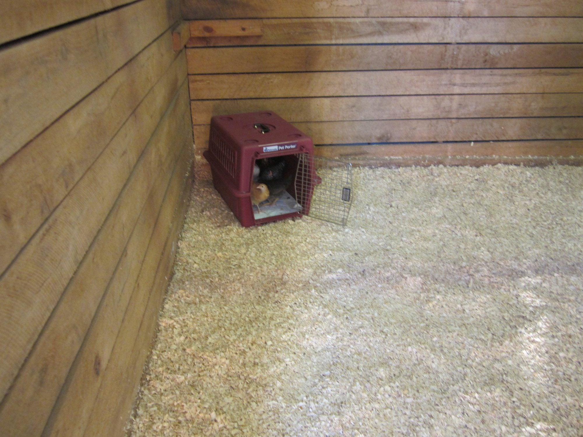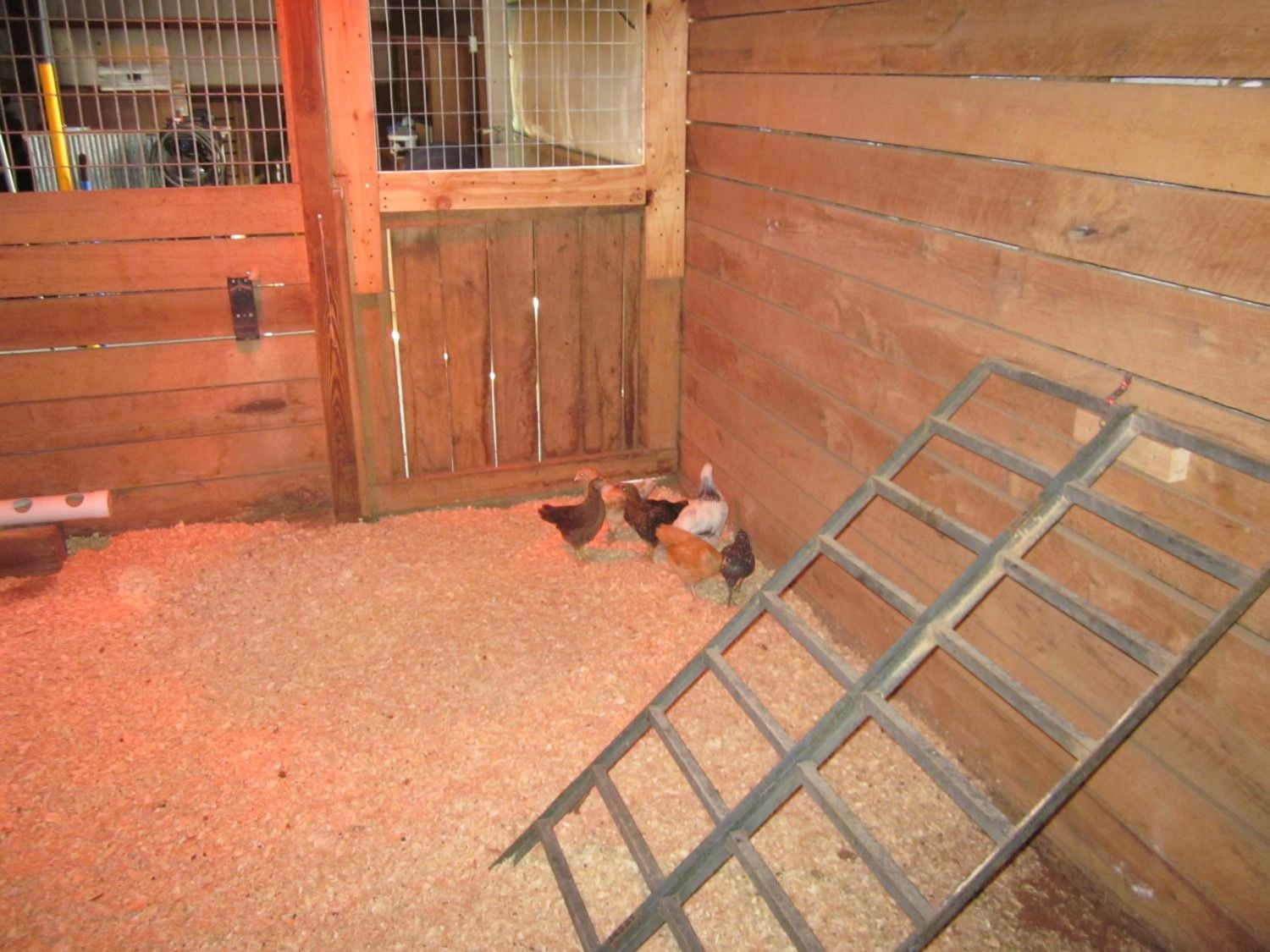 I ran outta time to build them a roost before church, so I quickly threw up my old 3-wheeler ramp for them to climb and roost on.