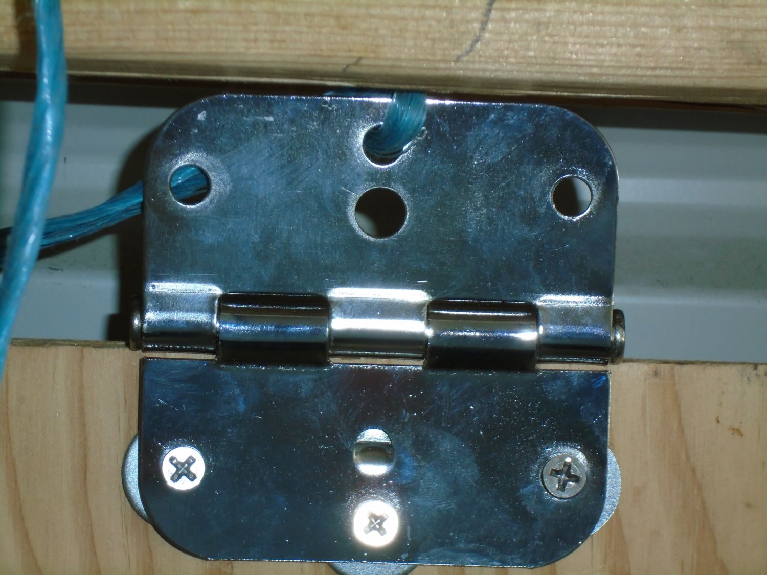 The hinge barely clears the wood. It is probably a beefer hinge than I need, but I had them already. A smaller hinge would allow me to narrow the gap and I may yet do that... I just don't want one that will be easily bent.