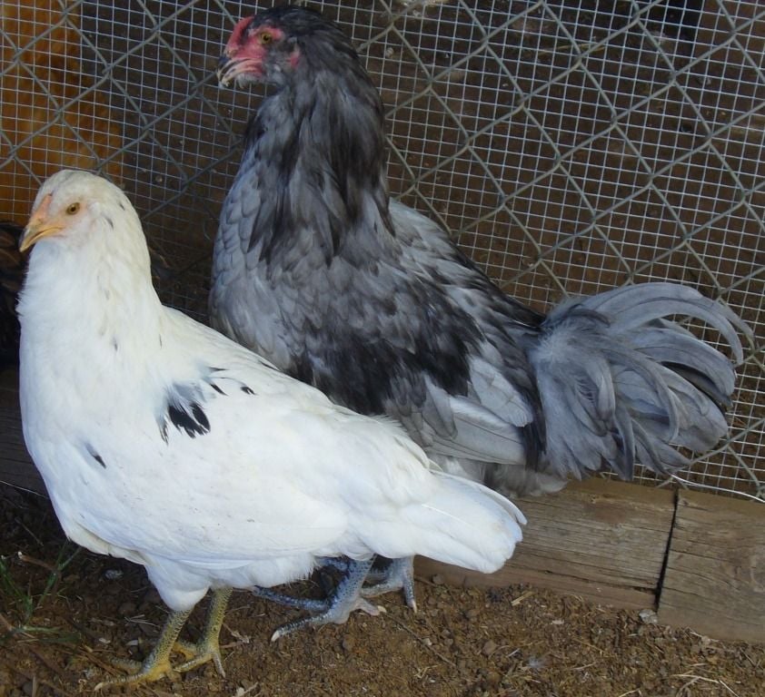 Here's the most up to date photo of our SBEL cockerel, Gus, and Lucy one of the SBEL pullets at 16 weeks: