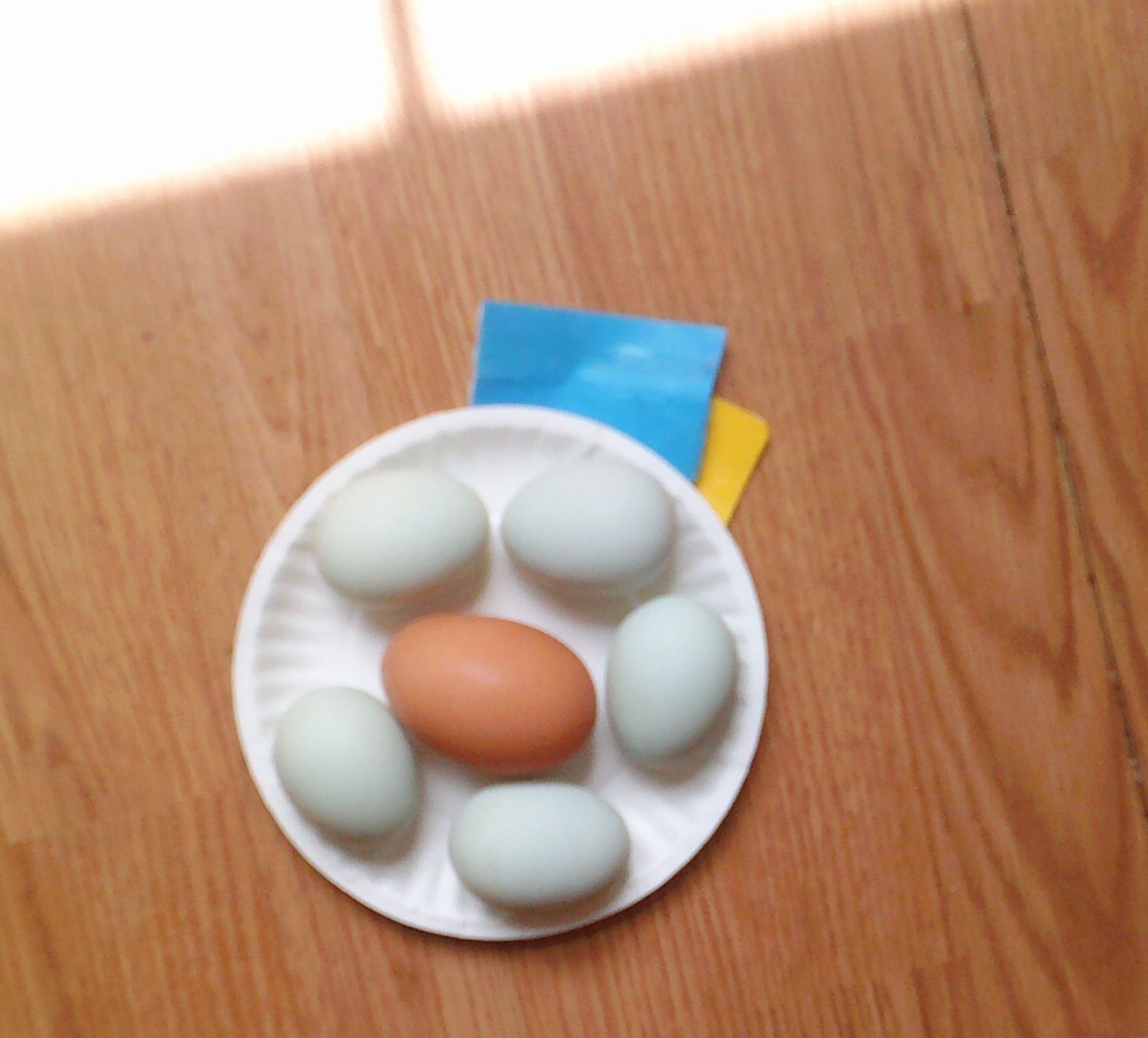 The main reason I decided to try an SBEL cockerel (supposed to be my only cockerel but got a Welsummer "oops") was to try and continue the SBELs down the line (and not pay $24/chick plus $50 shipping) and in hopes of getting some good green and olive egg layers with my current layer flock. Folks who buy our eggs seem to really enjoy the color variety and I want to keep that going.